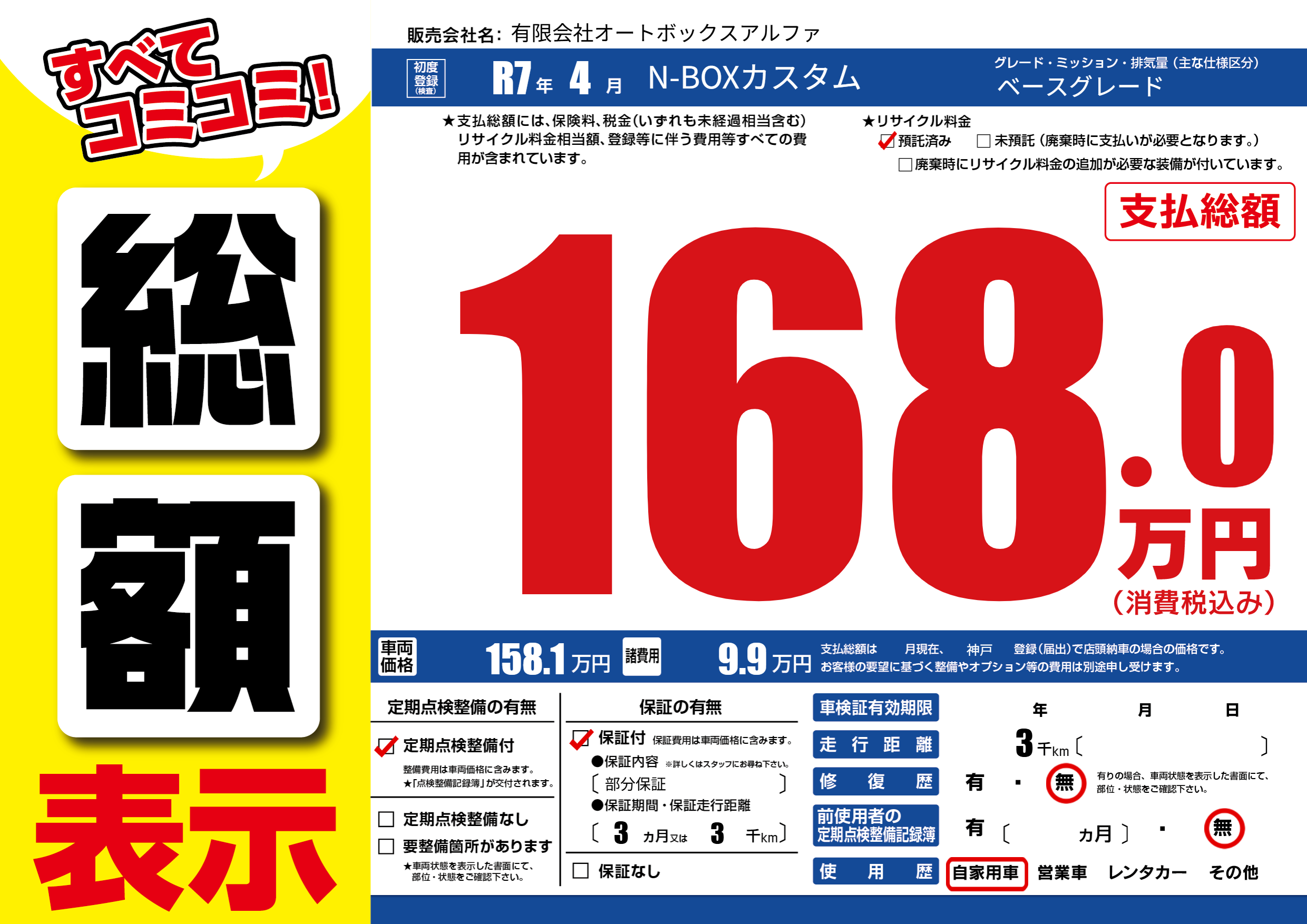 | 車検制限 | - 年 - 月 - 日 | ||