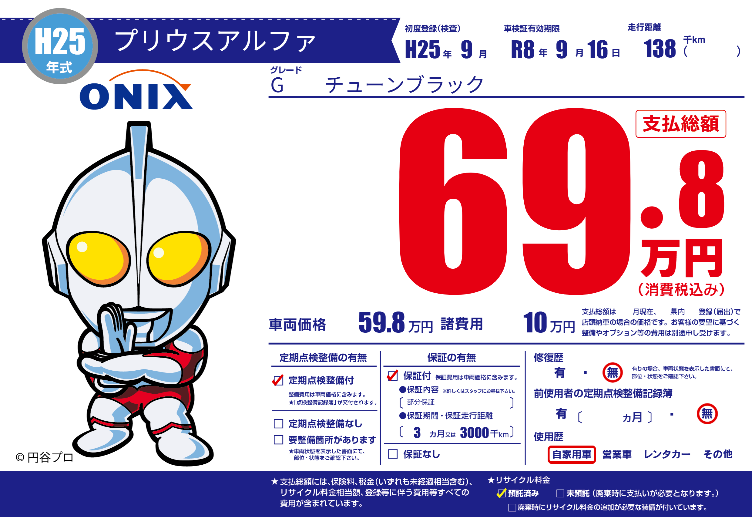 | 走行キロ | 13.8万km | 初年度登録 | H25年9月 |