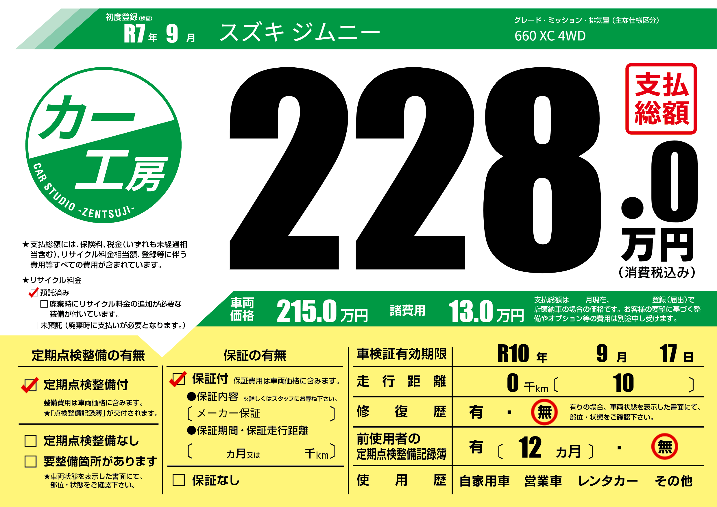 | 走行キロ | - | 初年度登録 | R7年9月 |