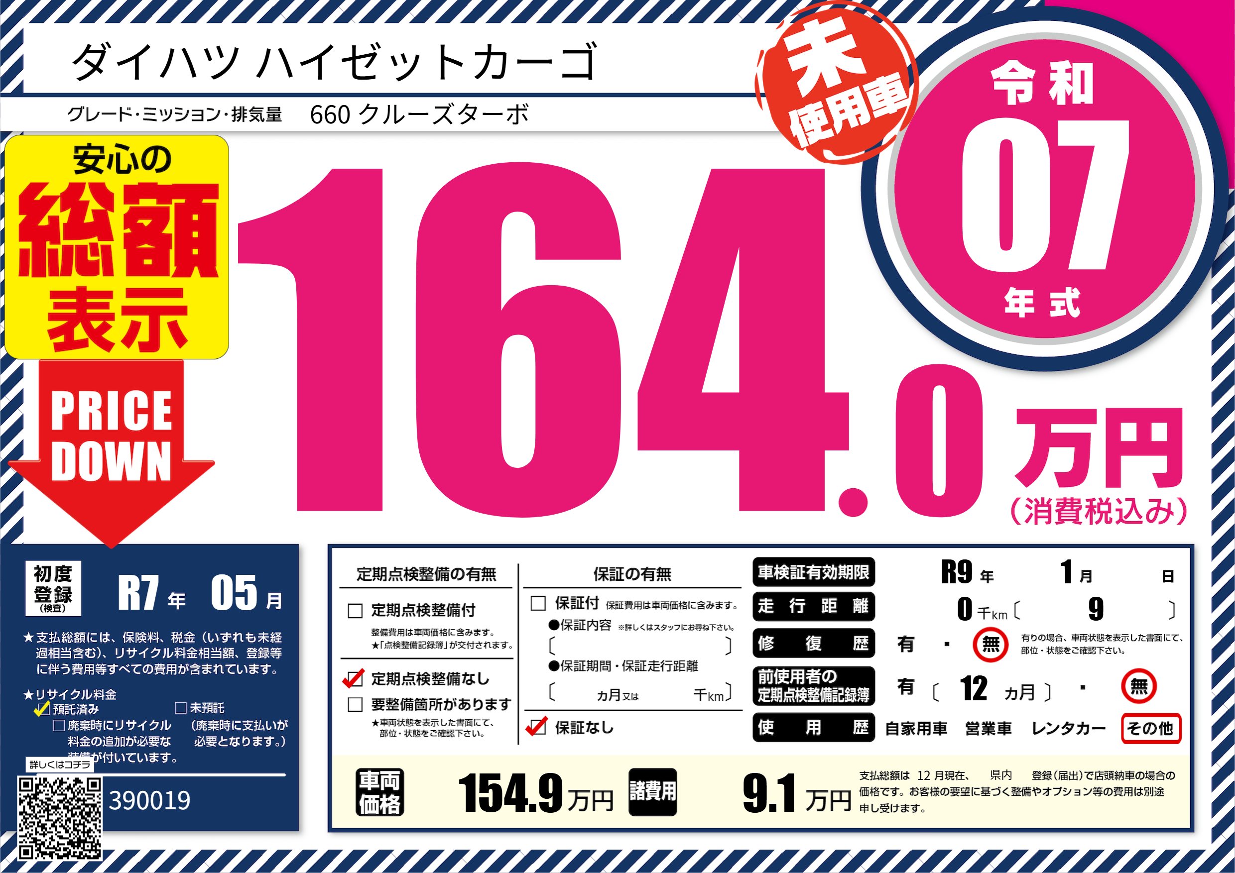 | 車名 | ダイハツ ハイゼットカーゴ | グレード ミッション 排気量 |