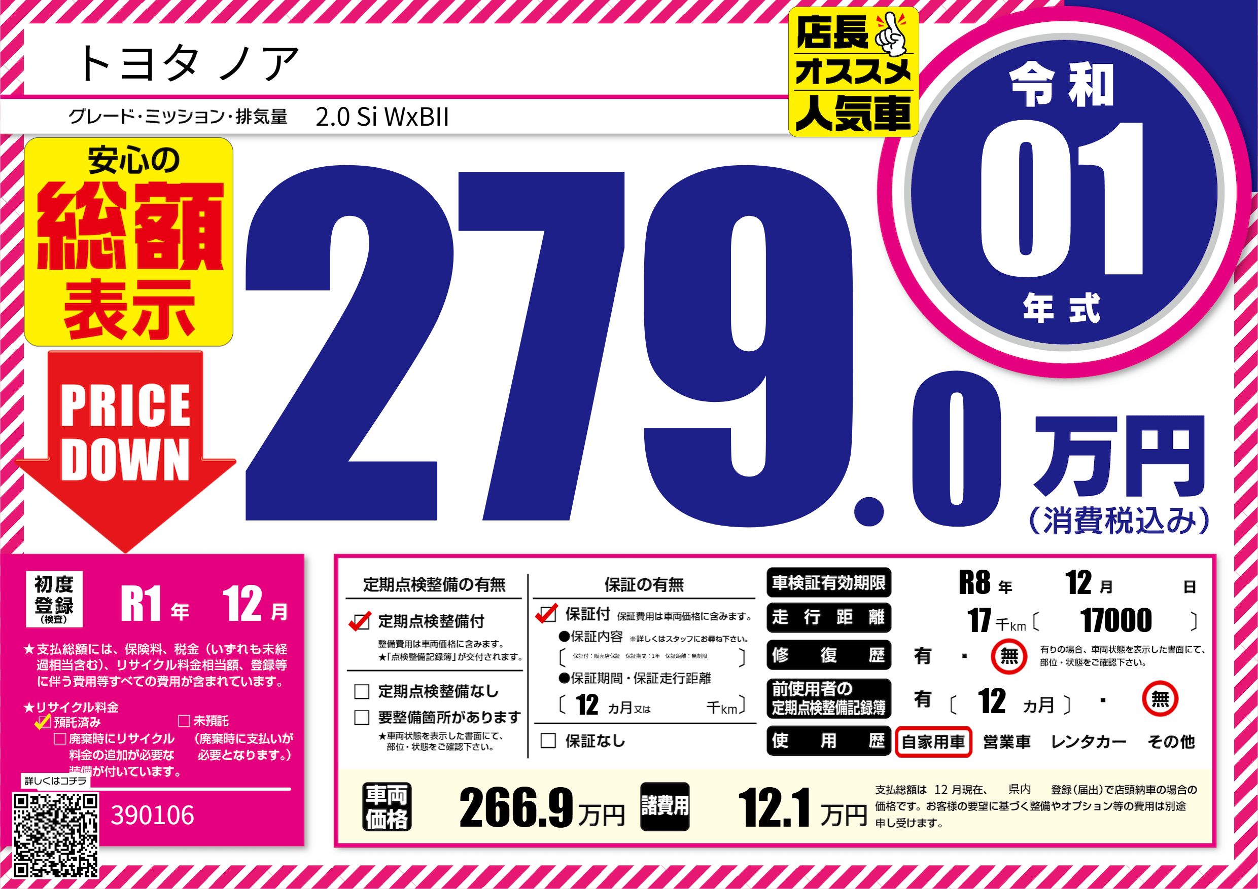 | 走行キロ | 1.7万km | 初年度登録 | R1年12月 |