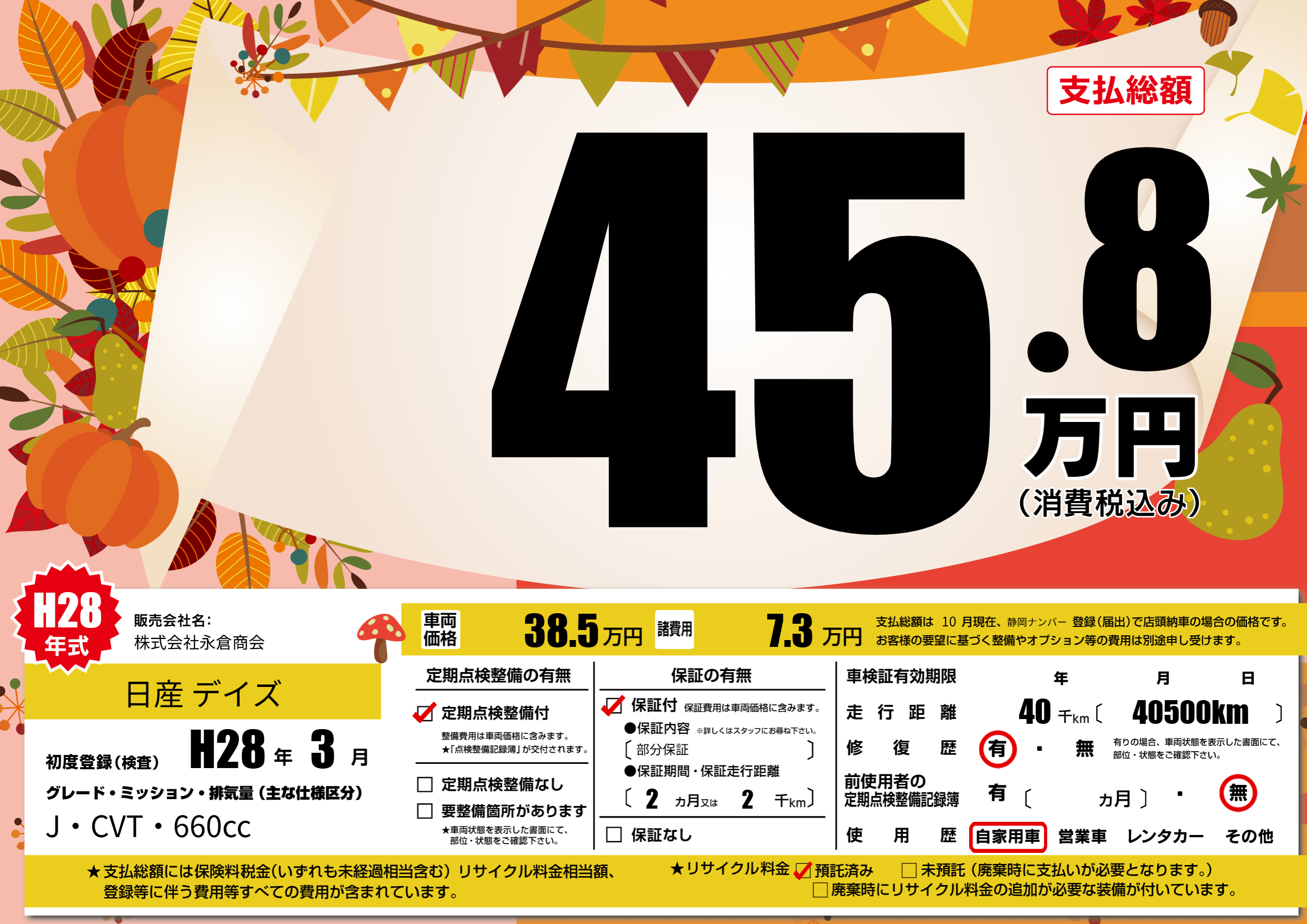 | 走行キロ | 4万km | ||