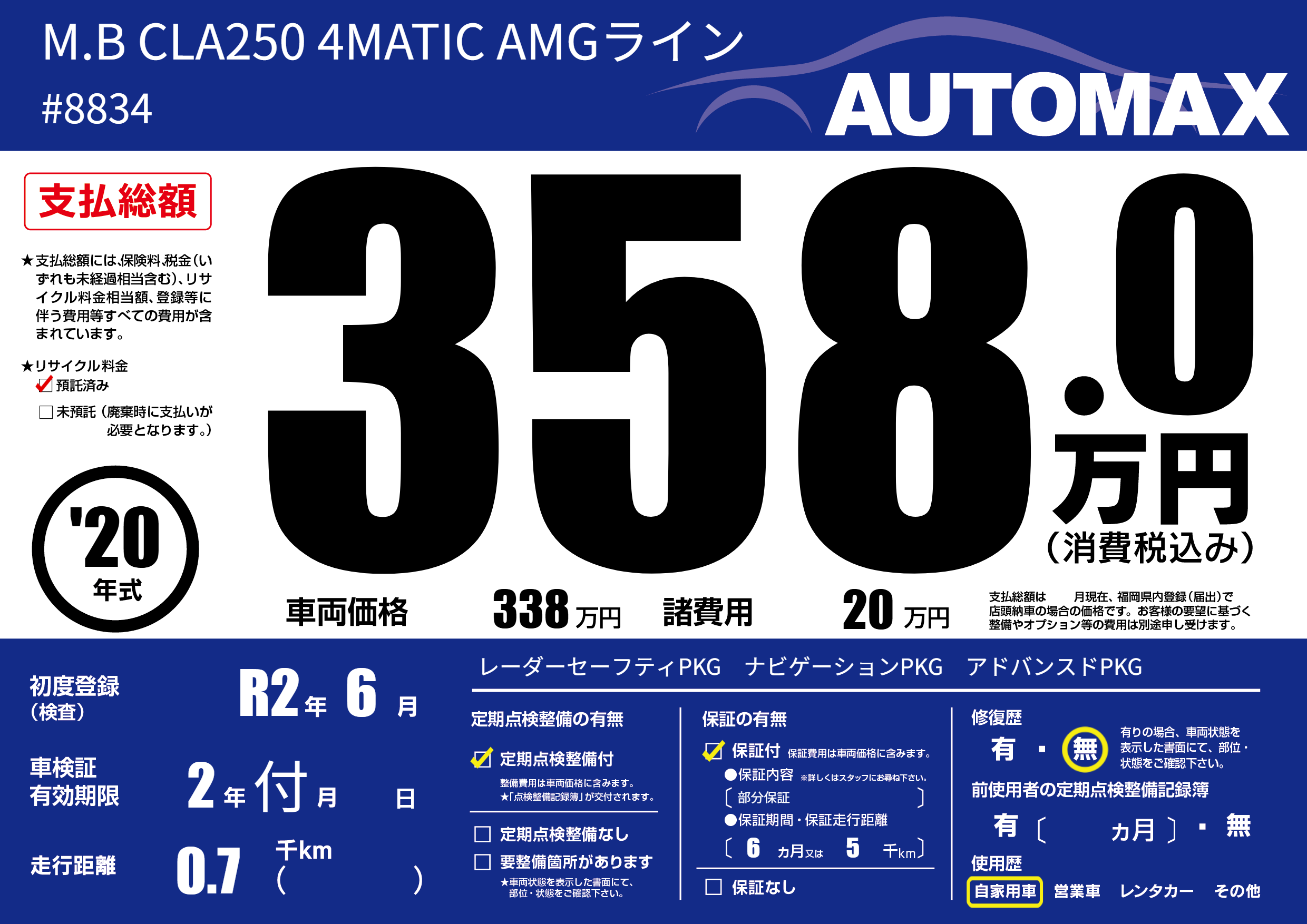 なし | 車検制限 | 2年付月---月 |