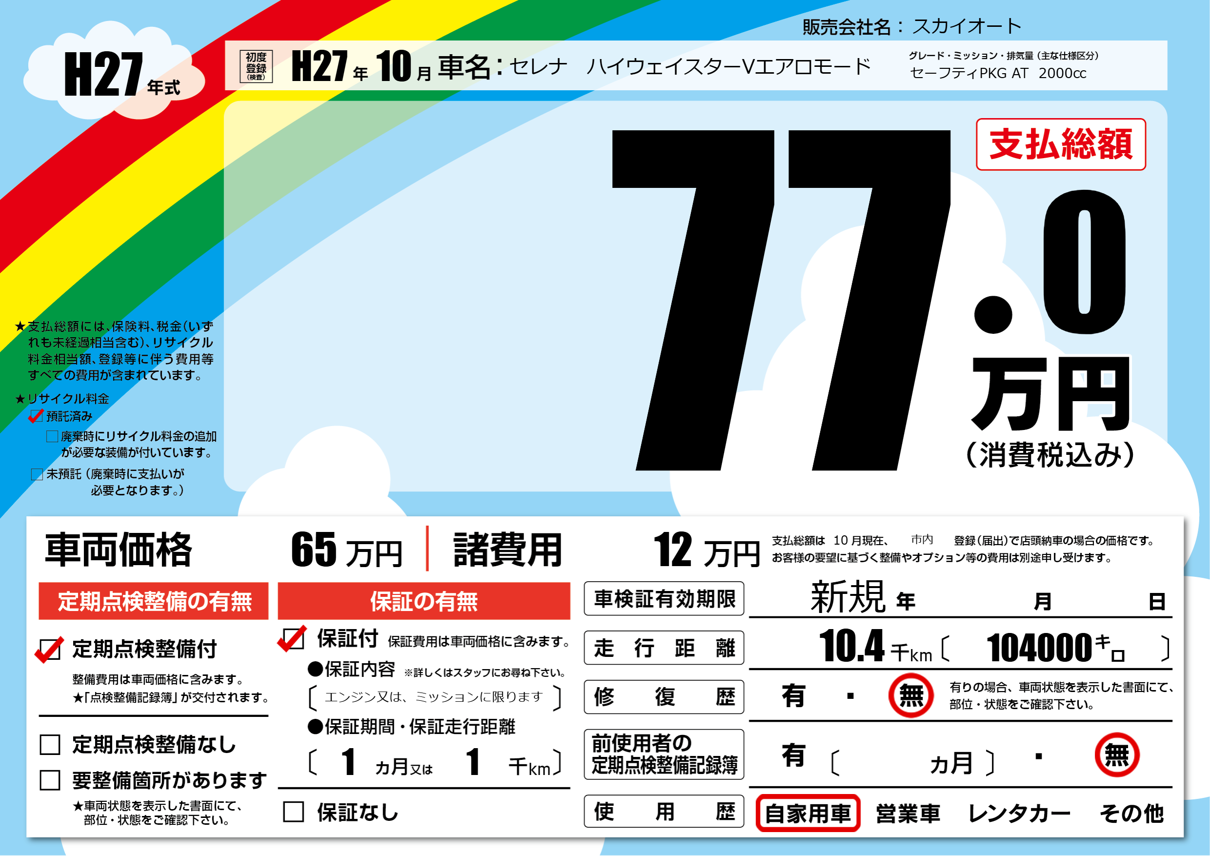 | 定期点検整備 | 定期点検整備あり | ||