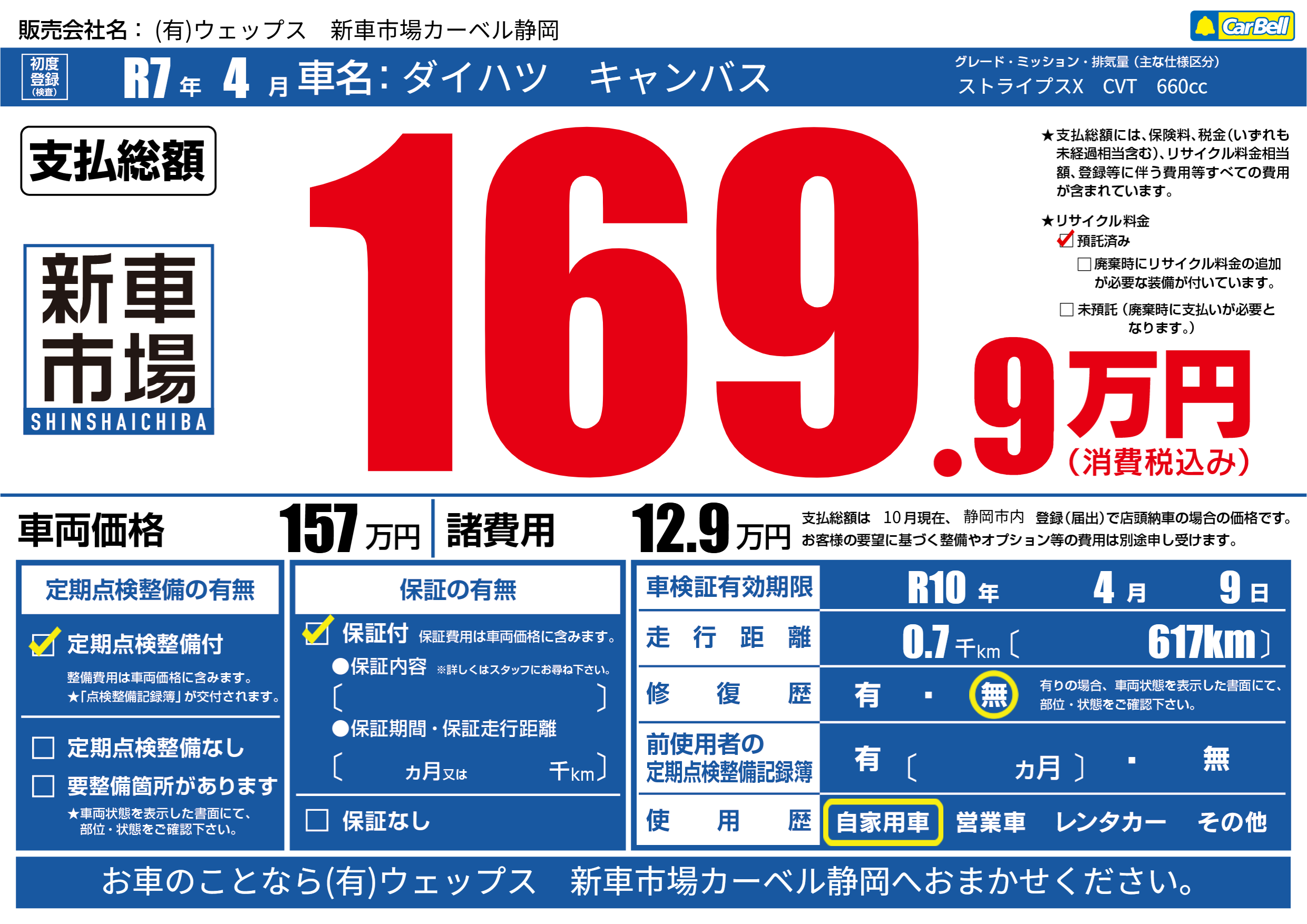 | 走行キロ | - | 初年度登録 | R7年4月 |