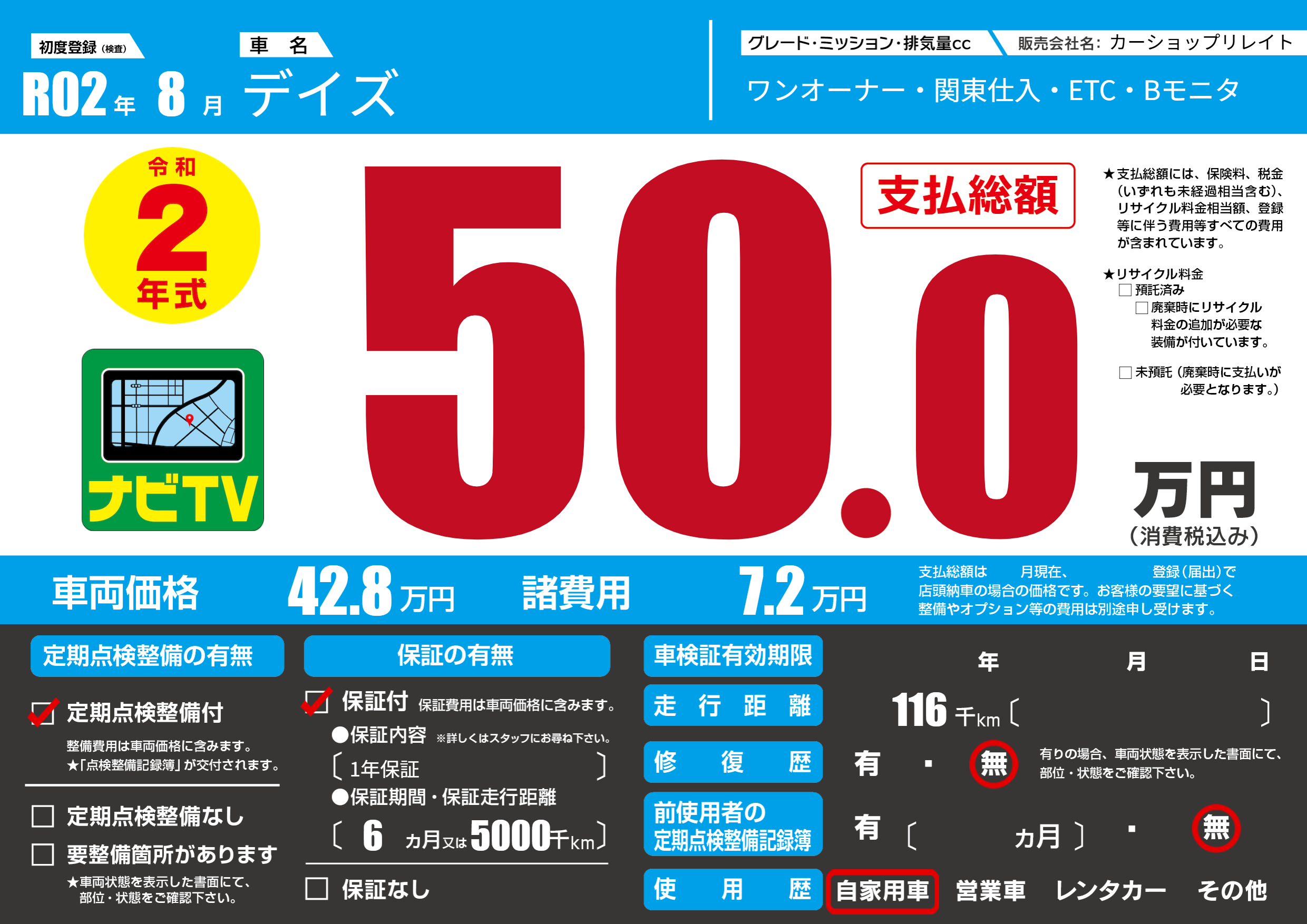 | 車検制限 | - 年 - 月 - 日 | ||