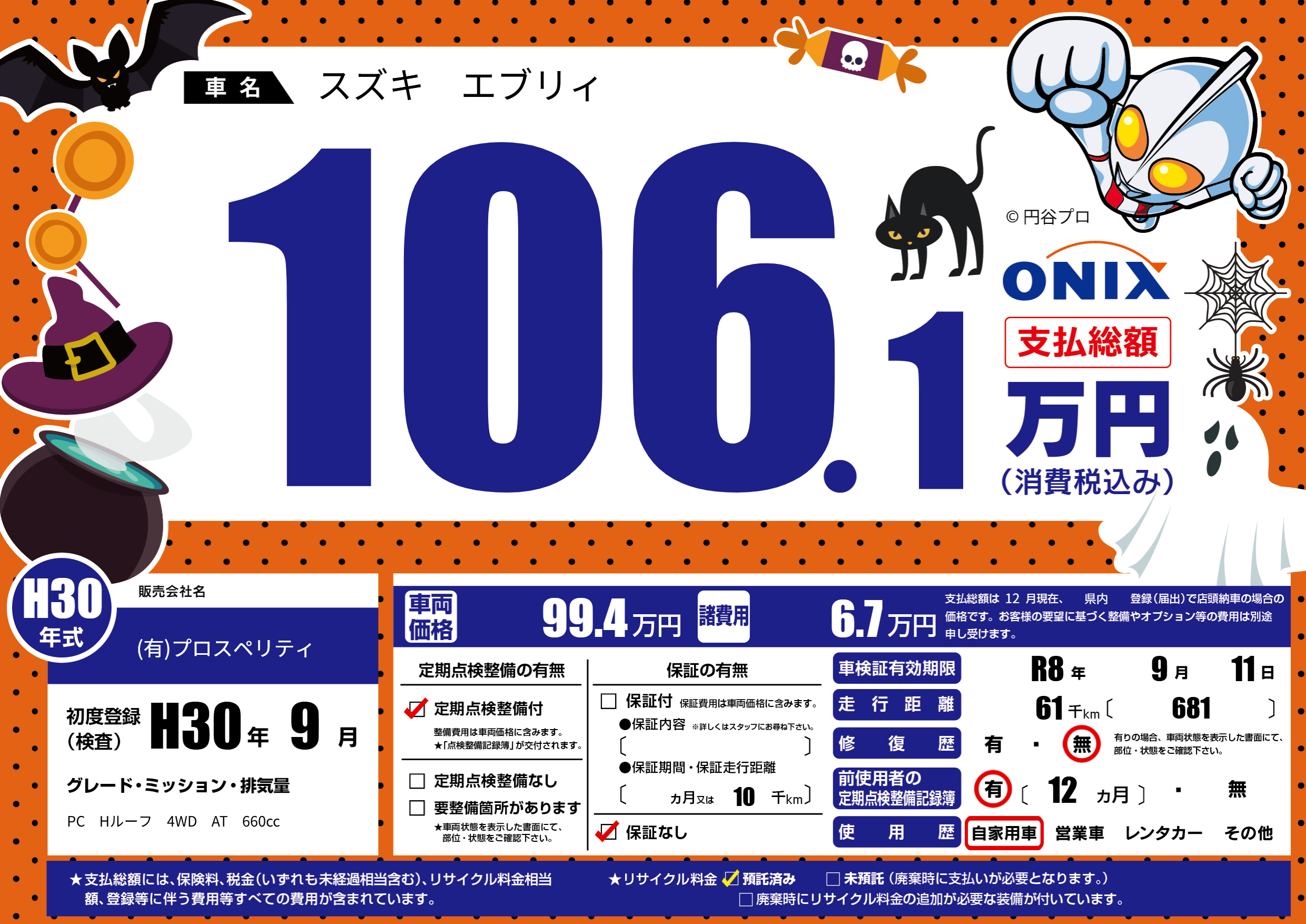 | 走行キロ | 6.1万km | 初年度登録 | H30年9月 |
