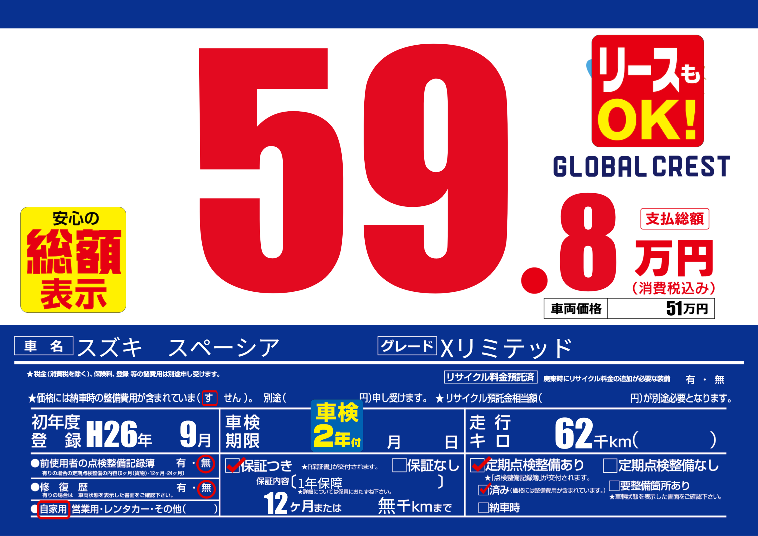 | 定期点検整備 | 定期点検整備あり 定期点検整備済み | ||