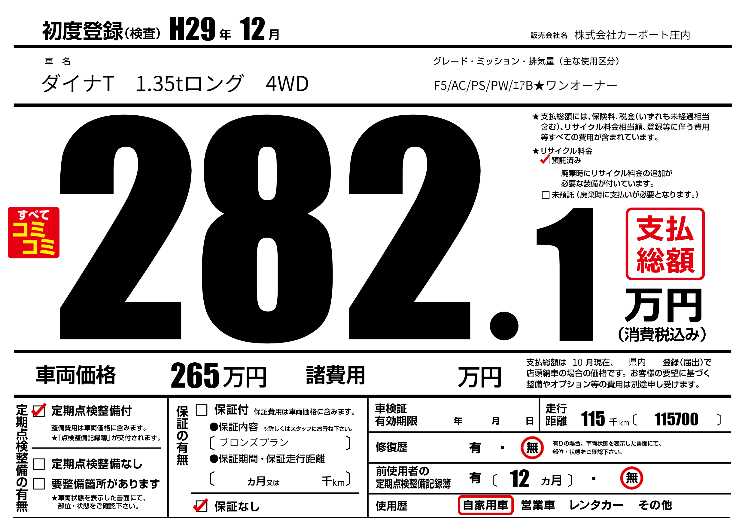 | 定期点検整備 | 定期点検整備あり | ||