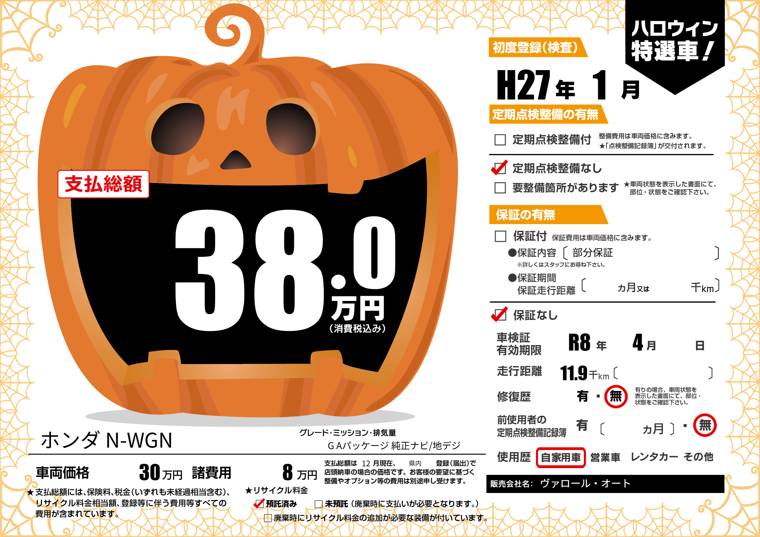 なし | 車検制限 | R8年4月---月 |