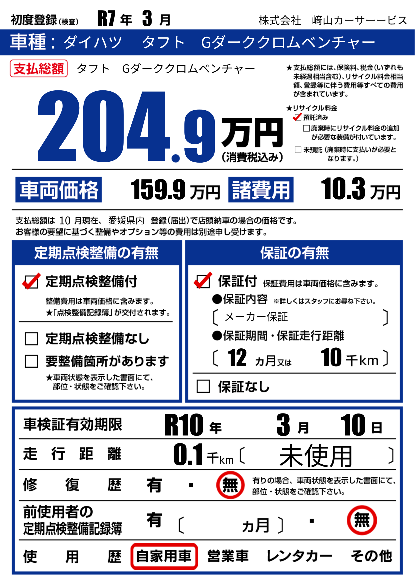 | 走行キロ | - | 初年度登録 | R7年3月 |