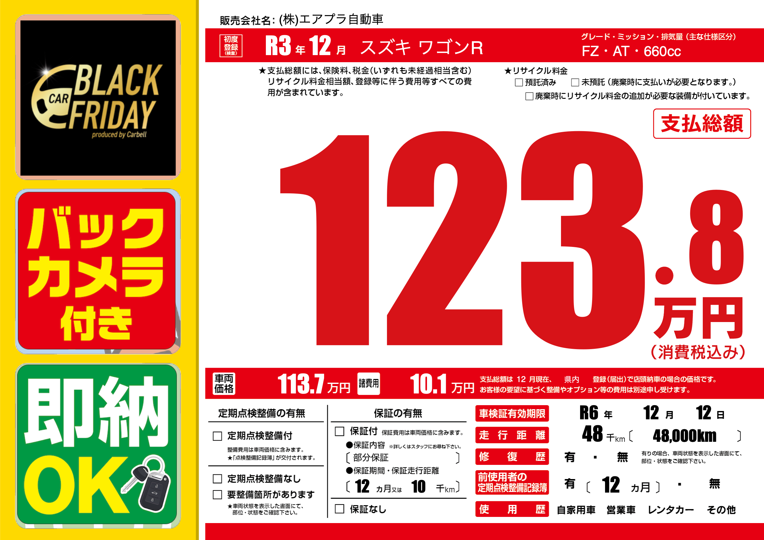 | 走行キロ | 4.8万km | 初年度登録 | R3年12月 |