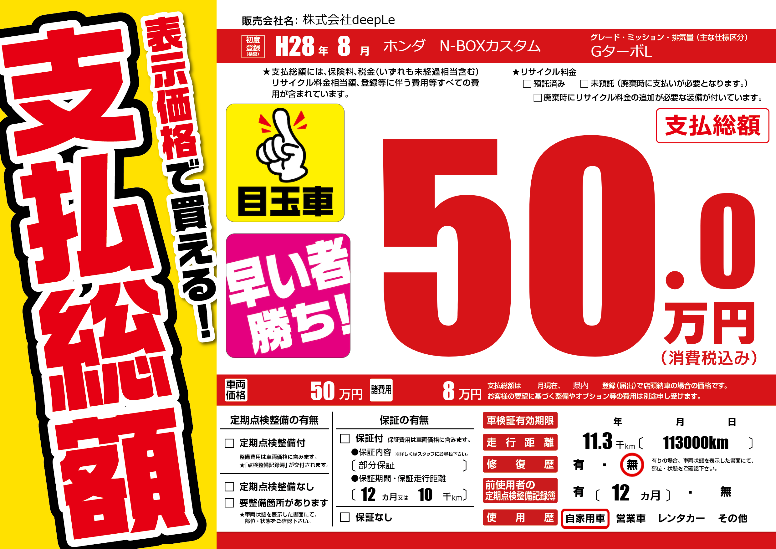 | 車名 | ホンダ N-BOXカスタム | グレード ミッション 排気量 |