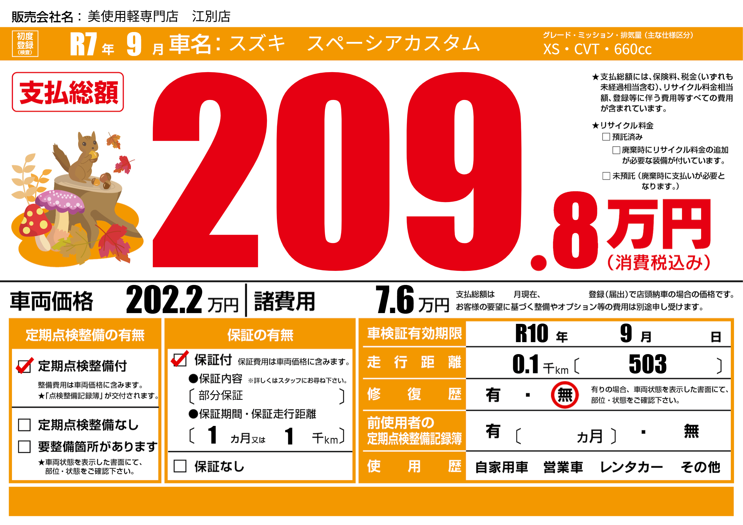 | 走行キロ | - | 初年度登録 | R7年9月 |
