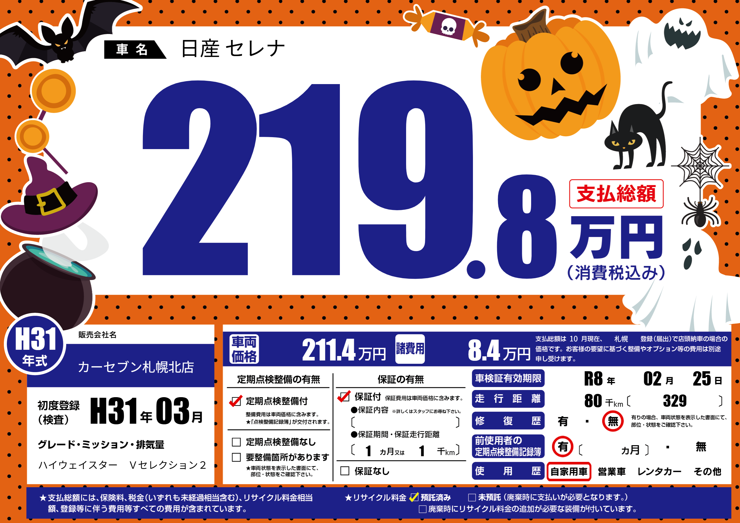 | 走行キロ | 8万km | 初年度登録 | H31年03月 |