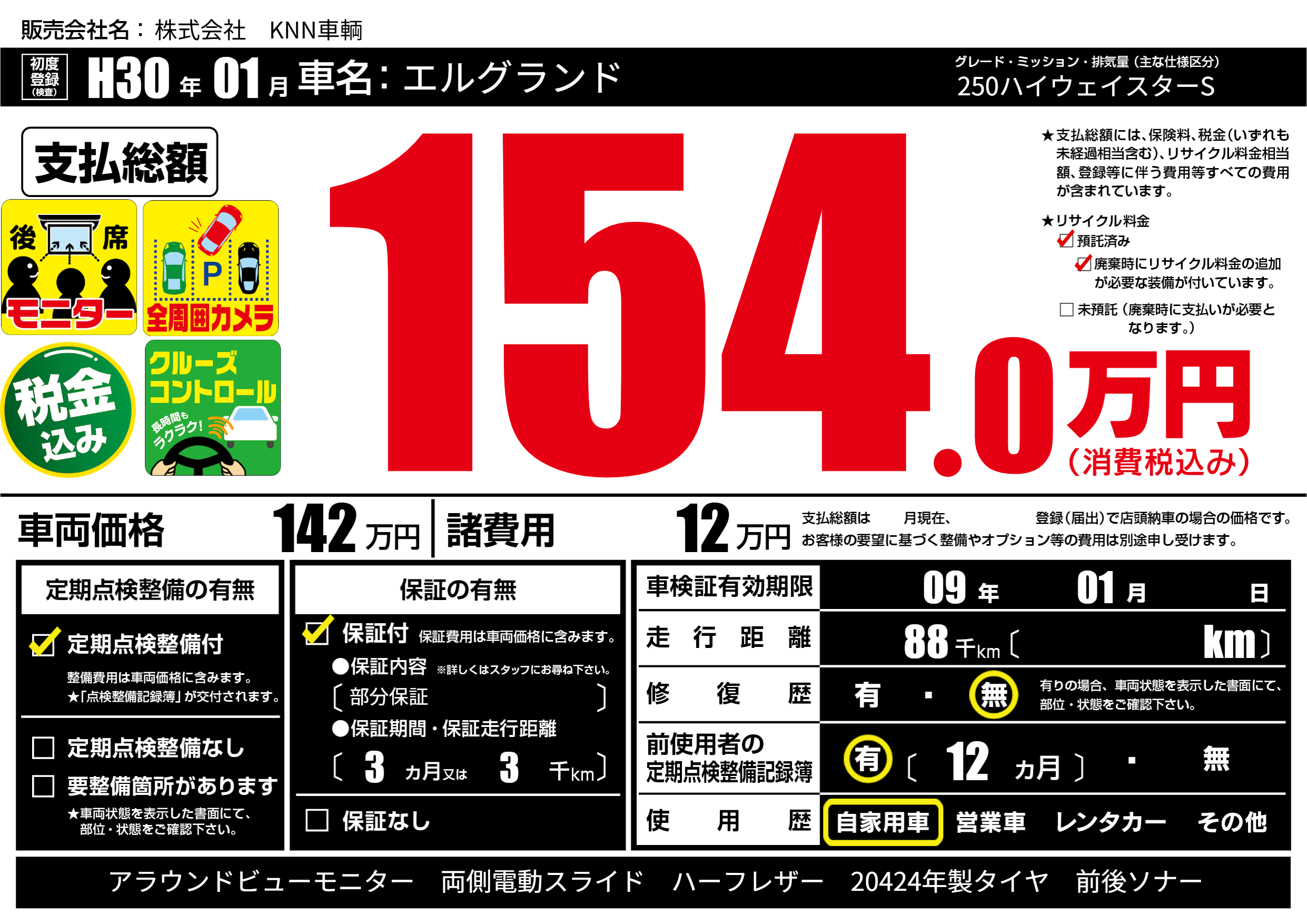 | 車名 | エルグランド | グレード ミッション 排気量 |