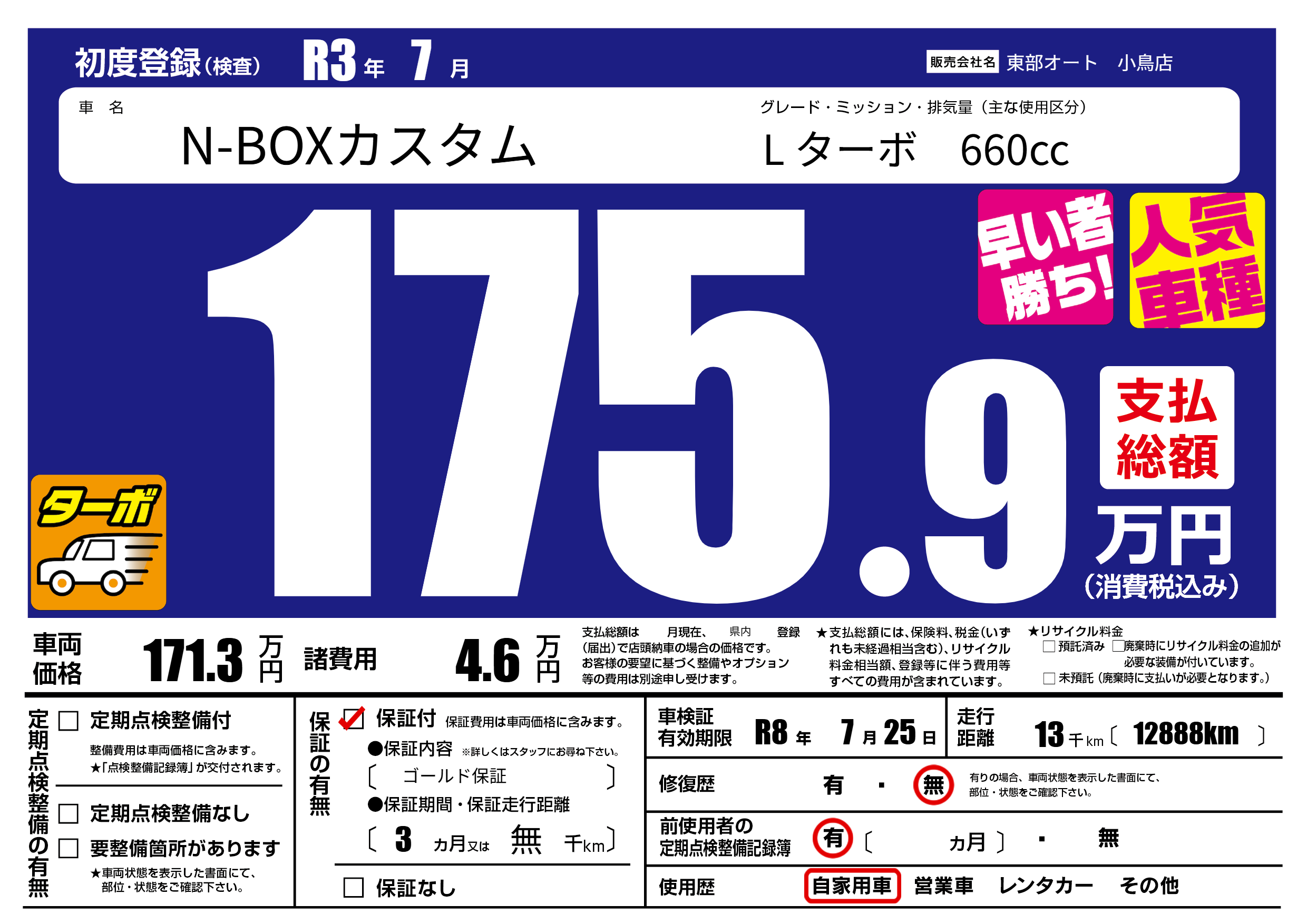 保証付き 保証内容( ゴールド保証) 3ヶ月または(無)千kmまで |