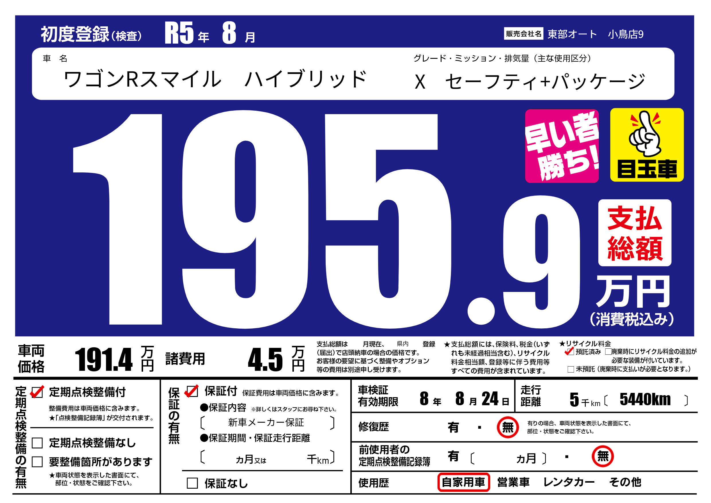 | 定期点検整備 | 定期点検整備あり | ||