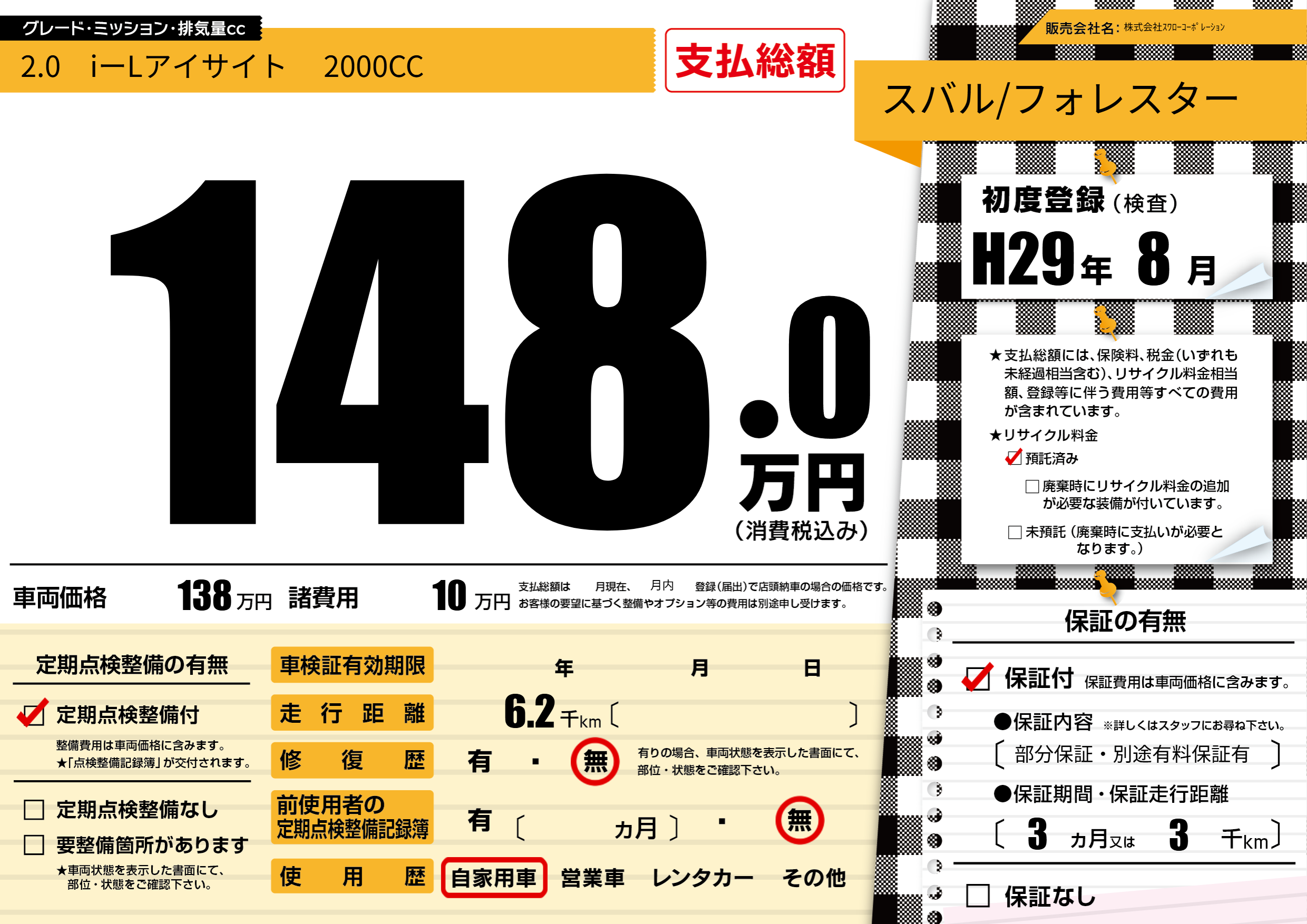 | 車名 | スバル/フォレスター | グレード ミッション 排気量 |