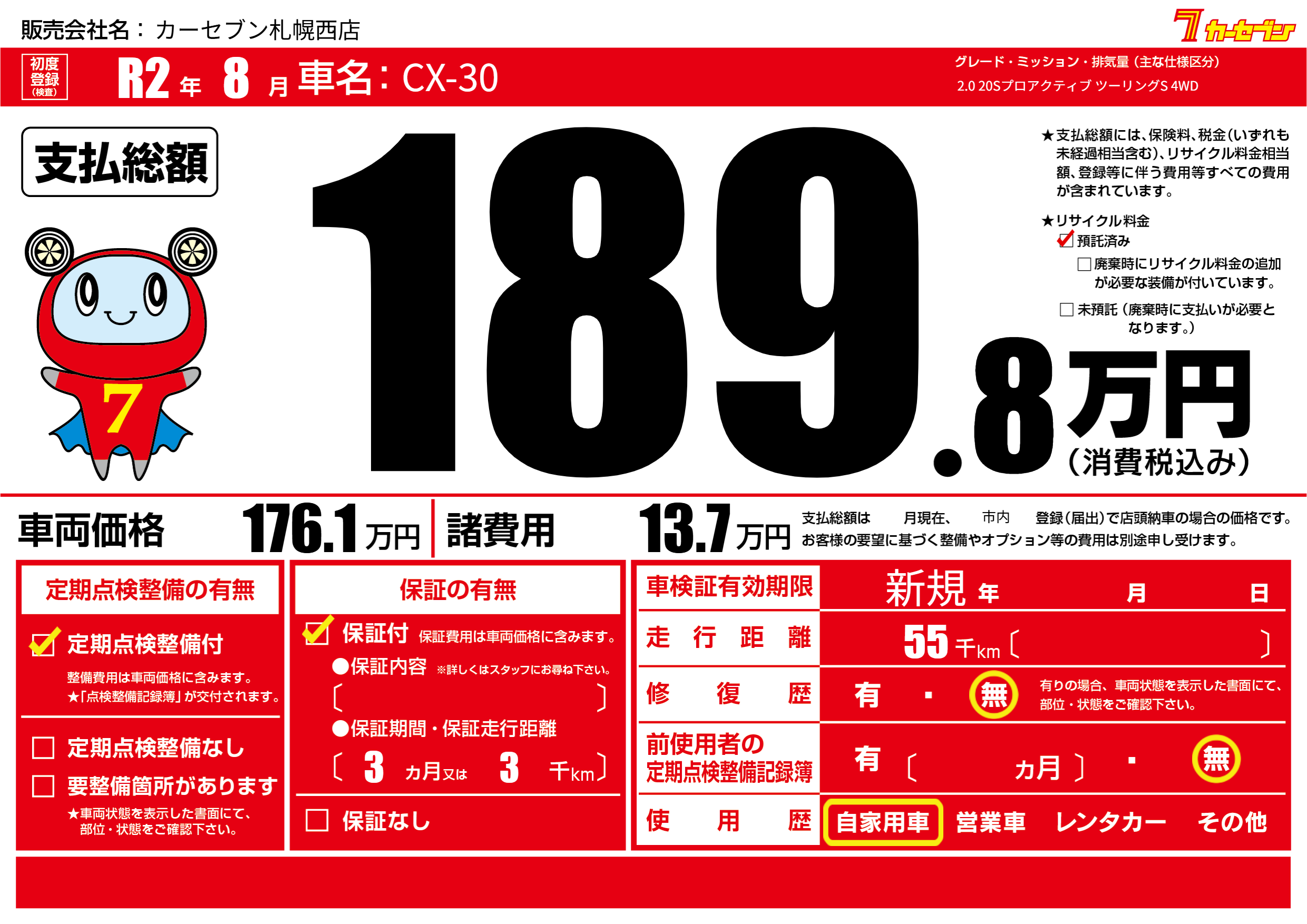 | 車名 | CX-30 | グレード ミッション 排気量 |