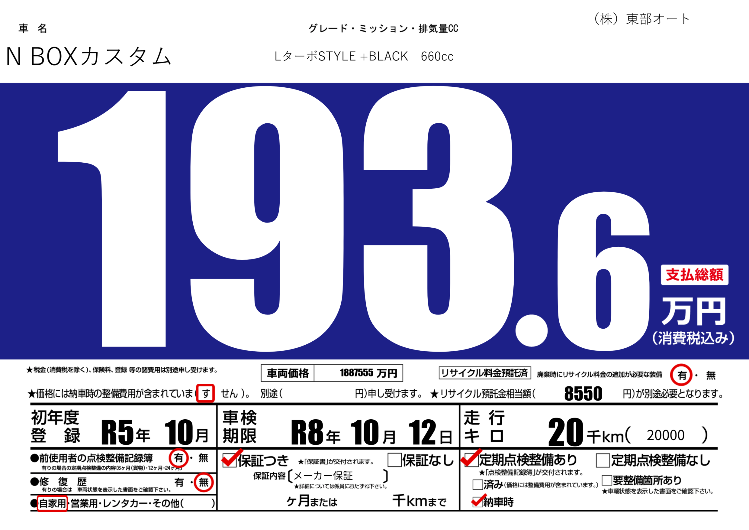 | 車検制限 | R8年 10月 12日 | ||