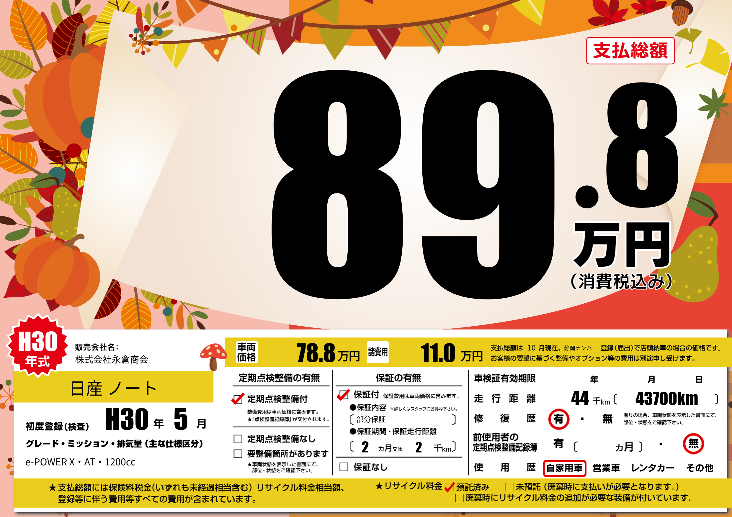 | 車名 | 日産 ノート | グレード ミッション 排気量 |