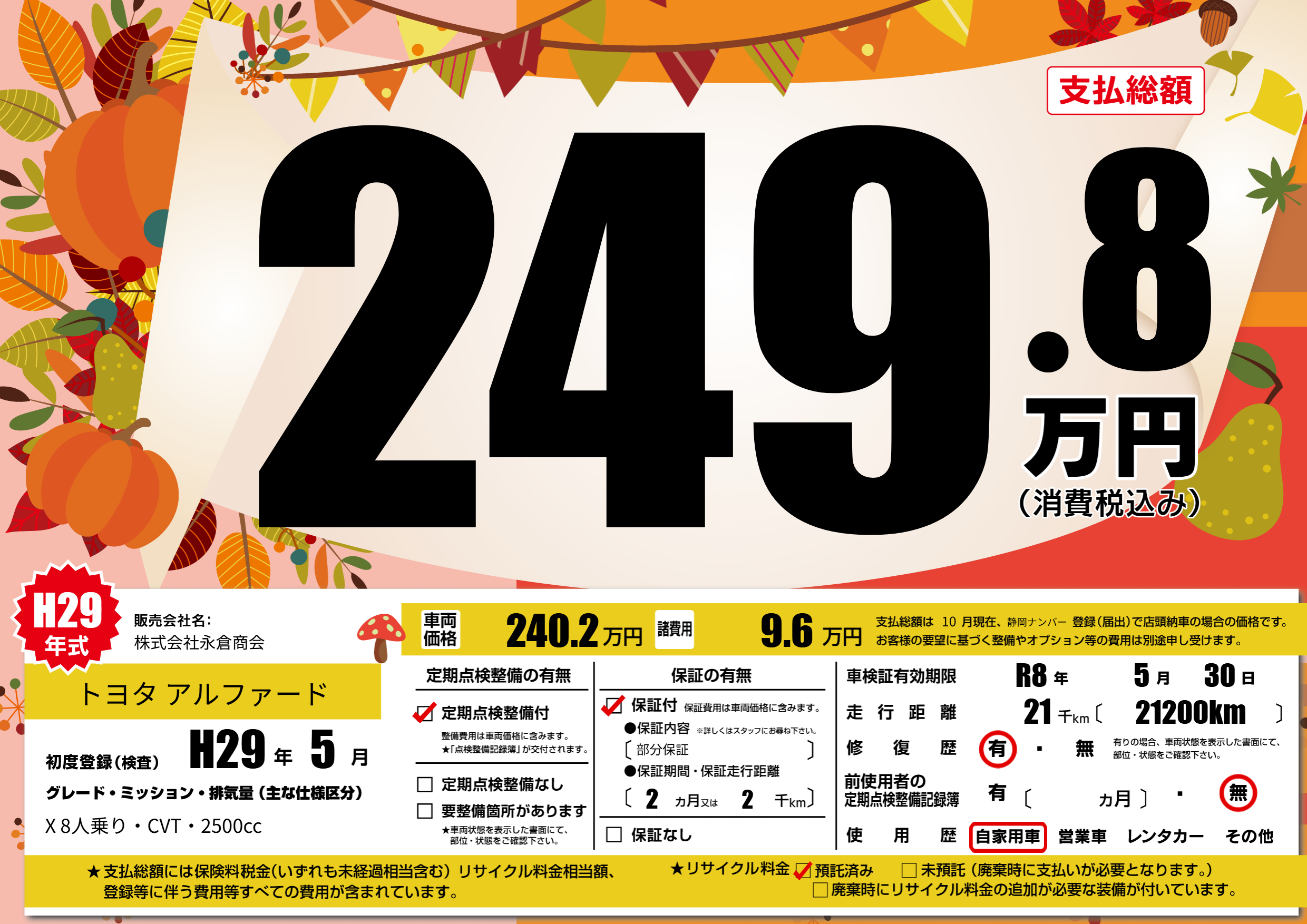なし | 車検制限 | R8年5月30月 |