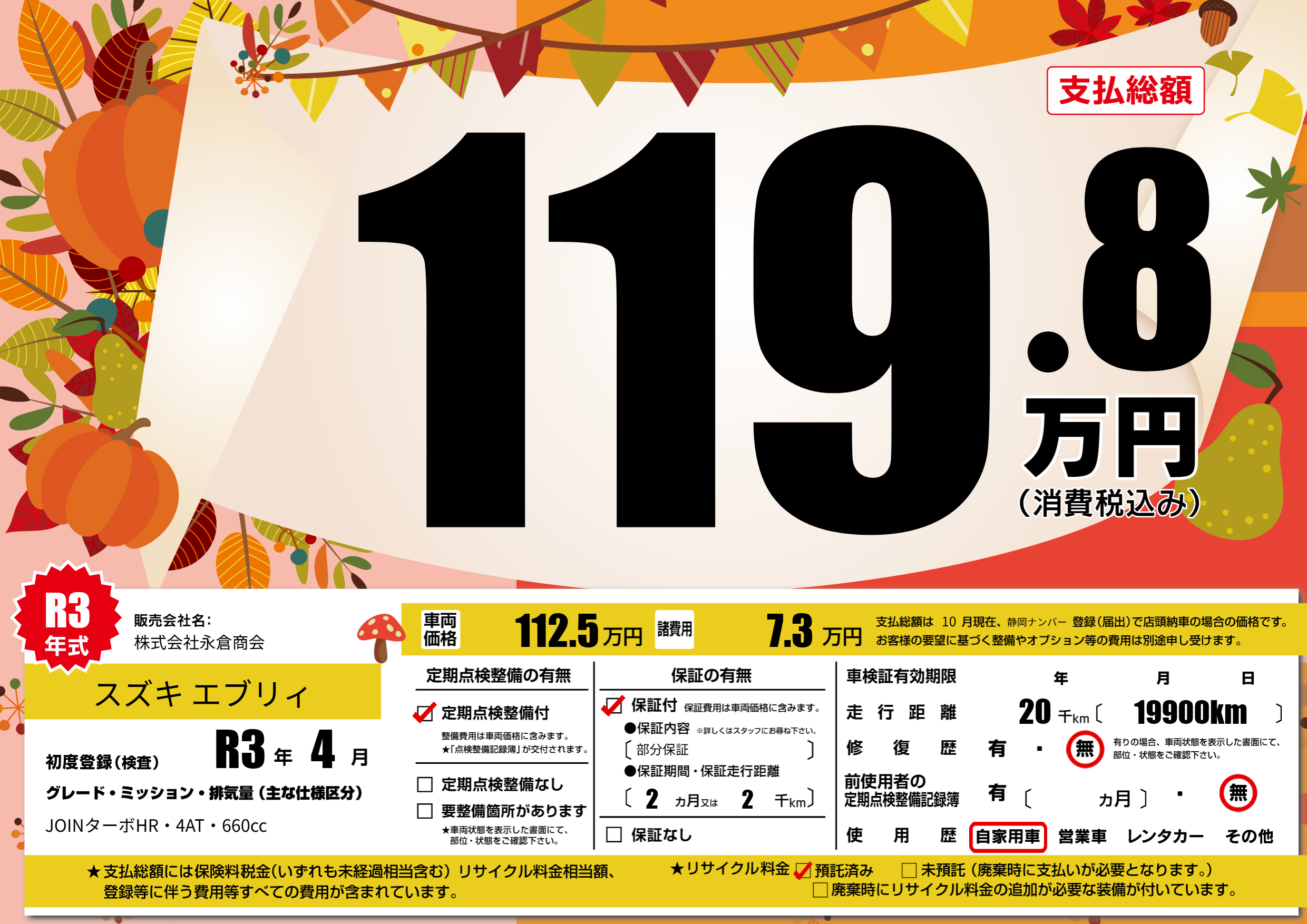 | 走行キロ | 2万km | 初年度登録 | R3年4月 |
