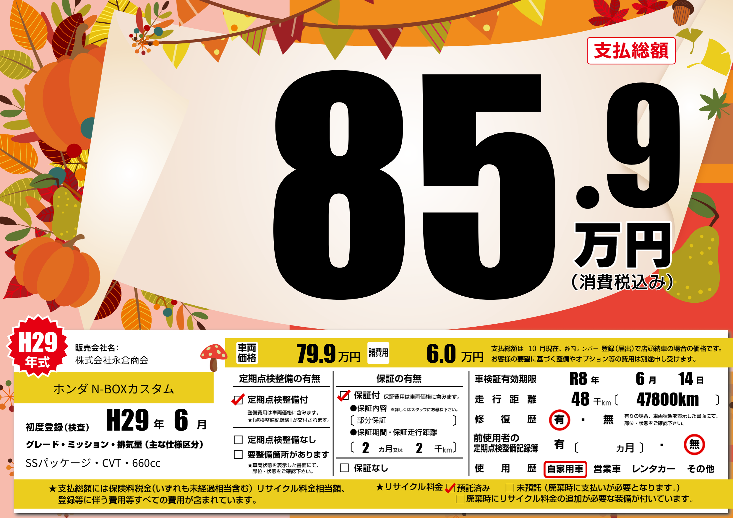 | 走行キロ | 4.8万km | 初年度登録 | H29年6月 |