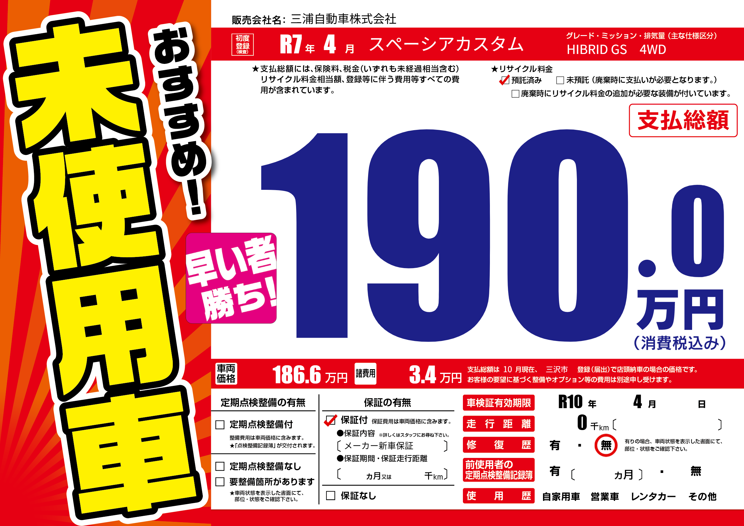 なし | 車検制限 | R10年4月---月 |