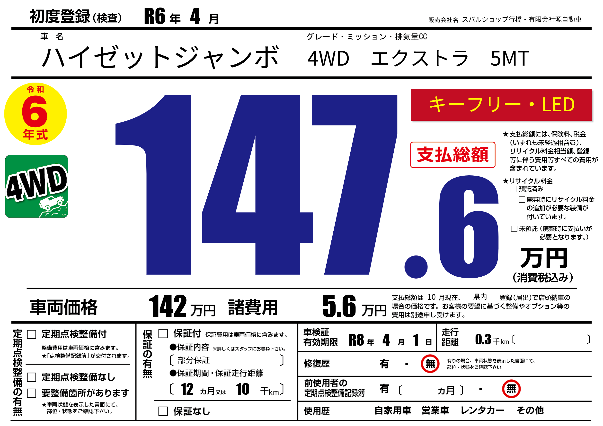 | 車検制限 | R8年 4月 1日 | ||