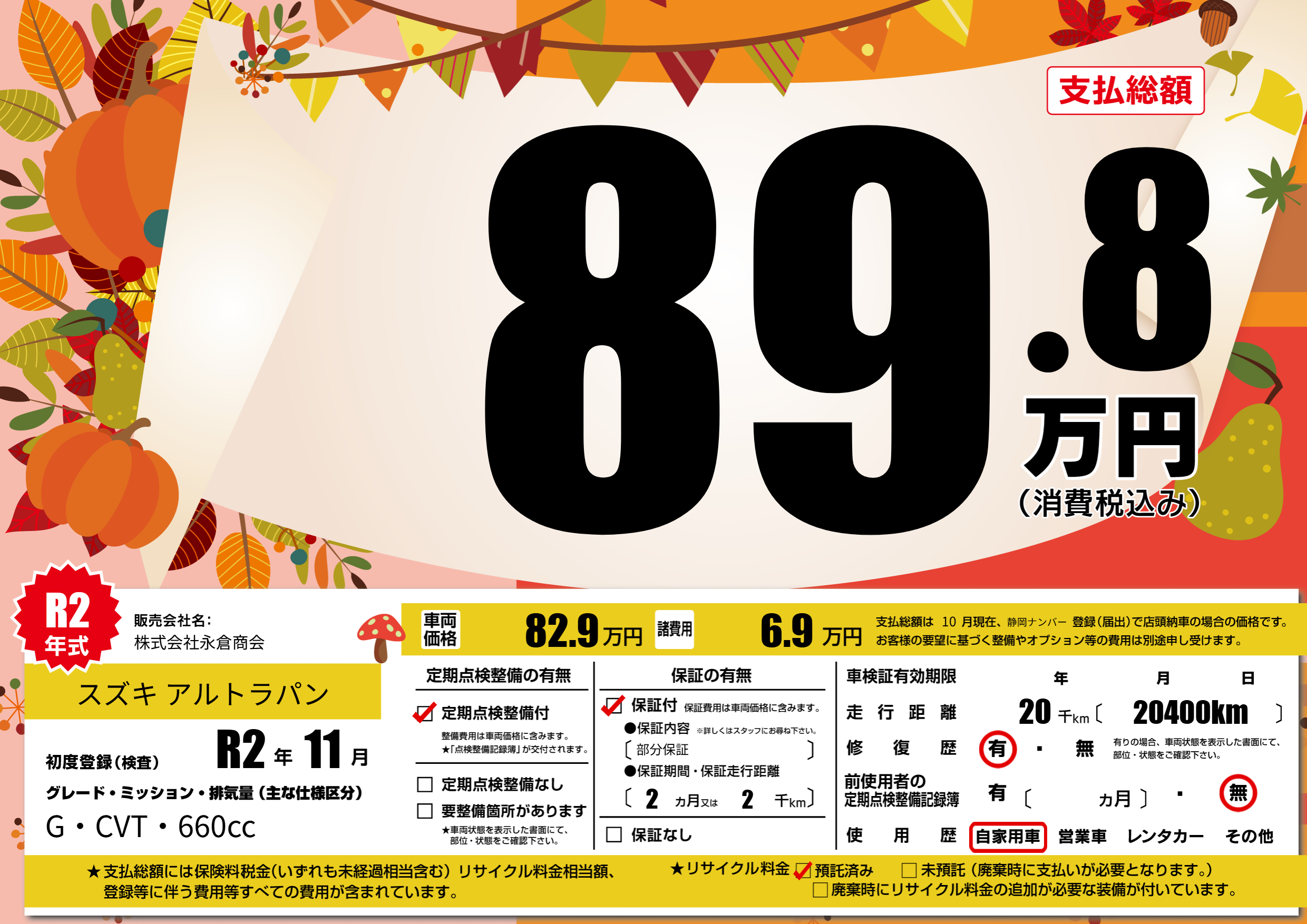 | 走行キロ | 2万km | 初年度登録 | R2年11月 |