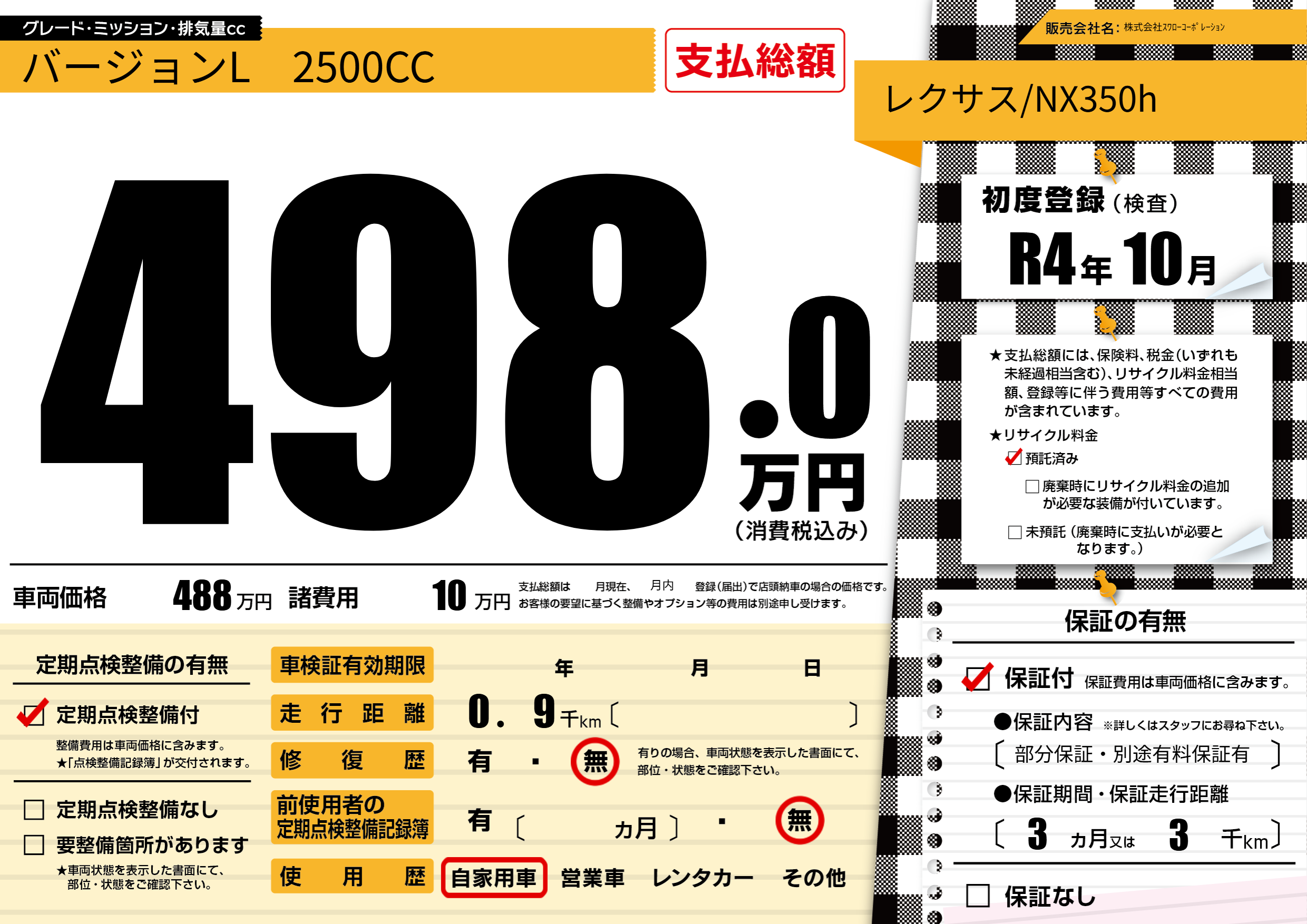 | 走行キロ | - | 初年度登録 | R4年10月 |