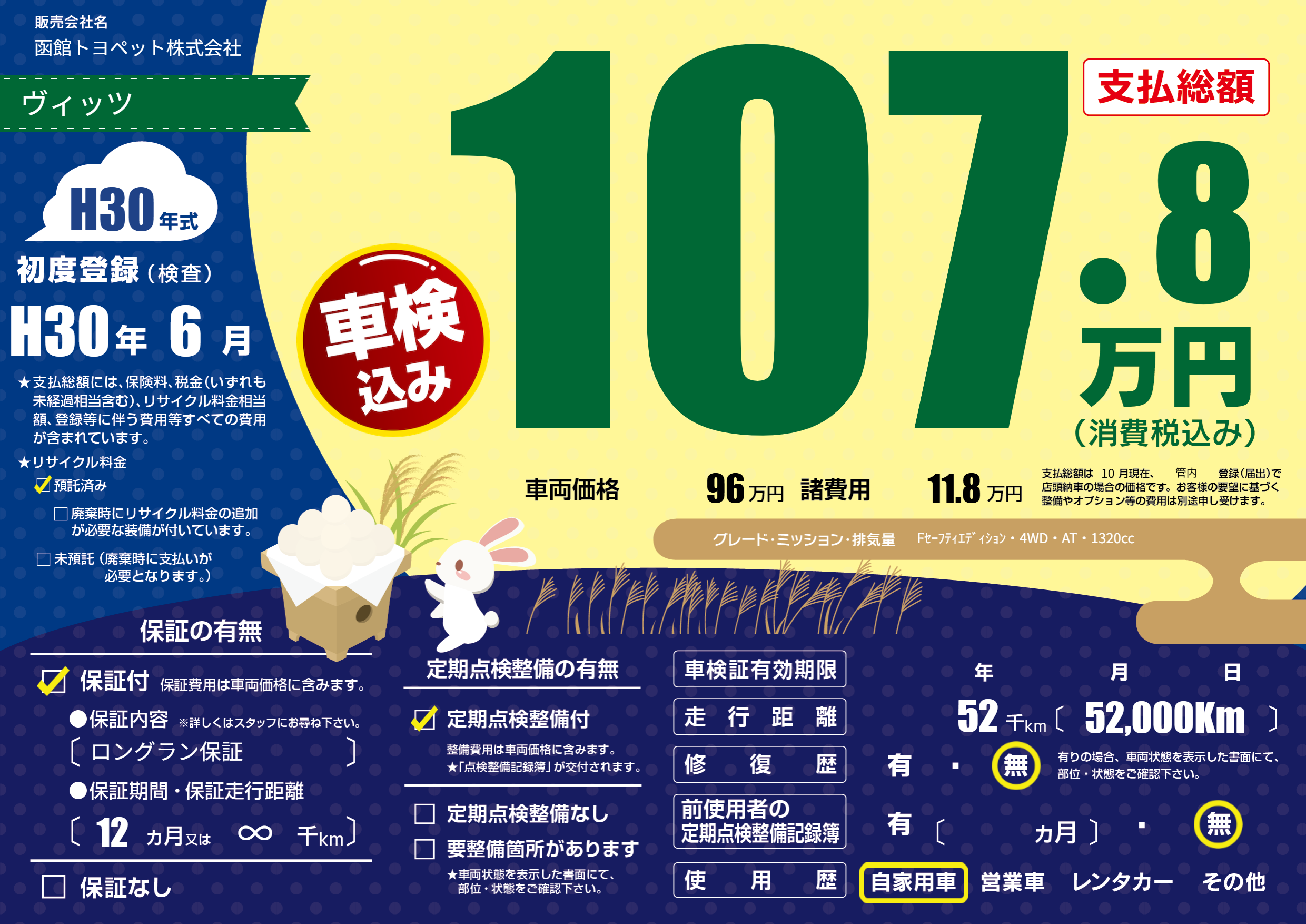 | 車名 | ヴィッツ | グレード ミッション 排気量 |