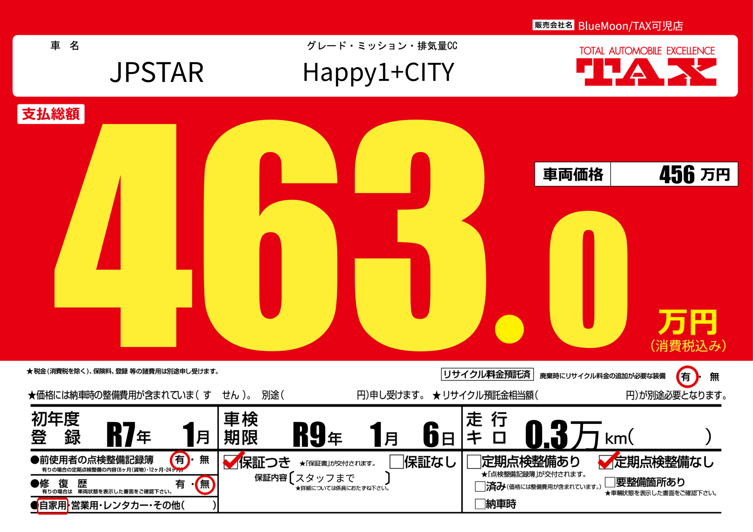 | 走行キロ | - | 初年度登録 | R7年1月 |