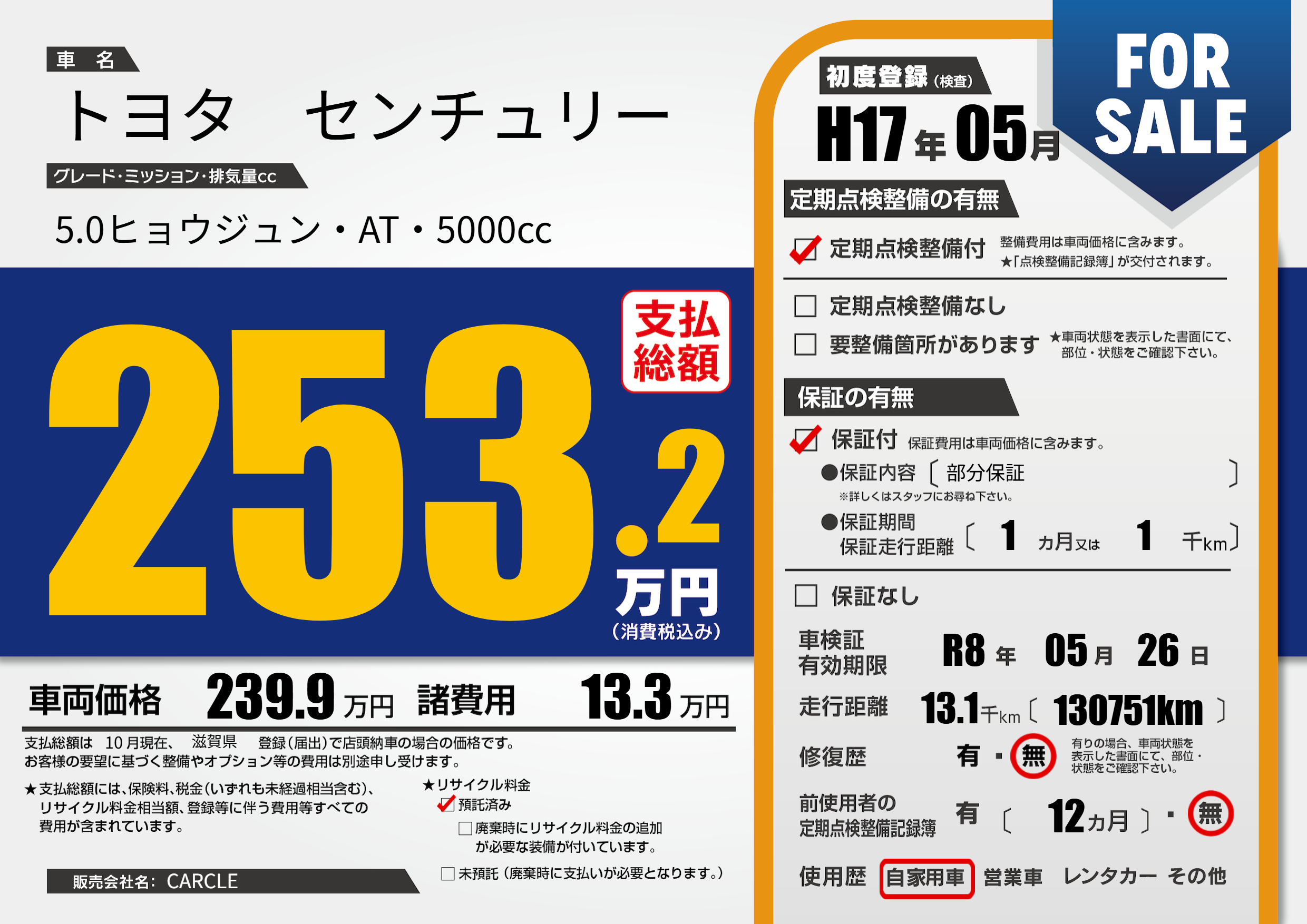 | 車検制限 | R8年 05月 26日 | ||
