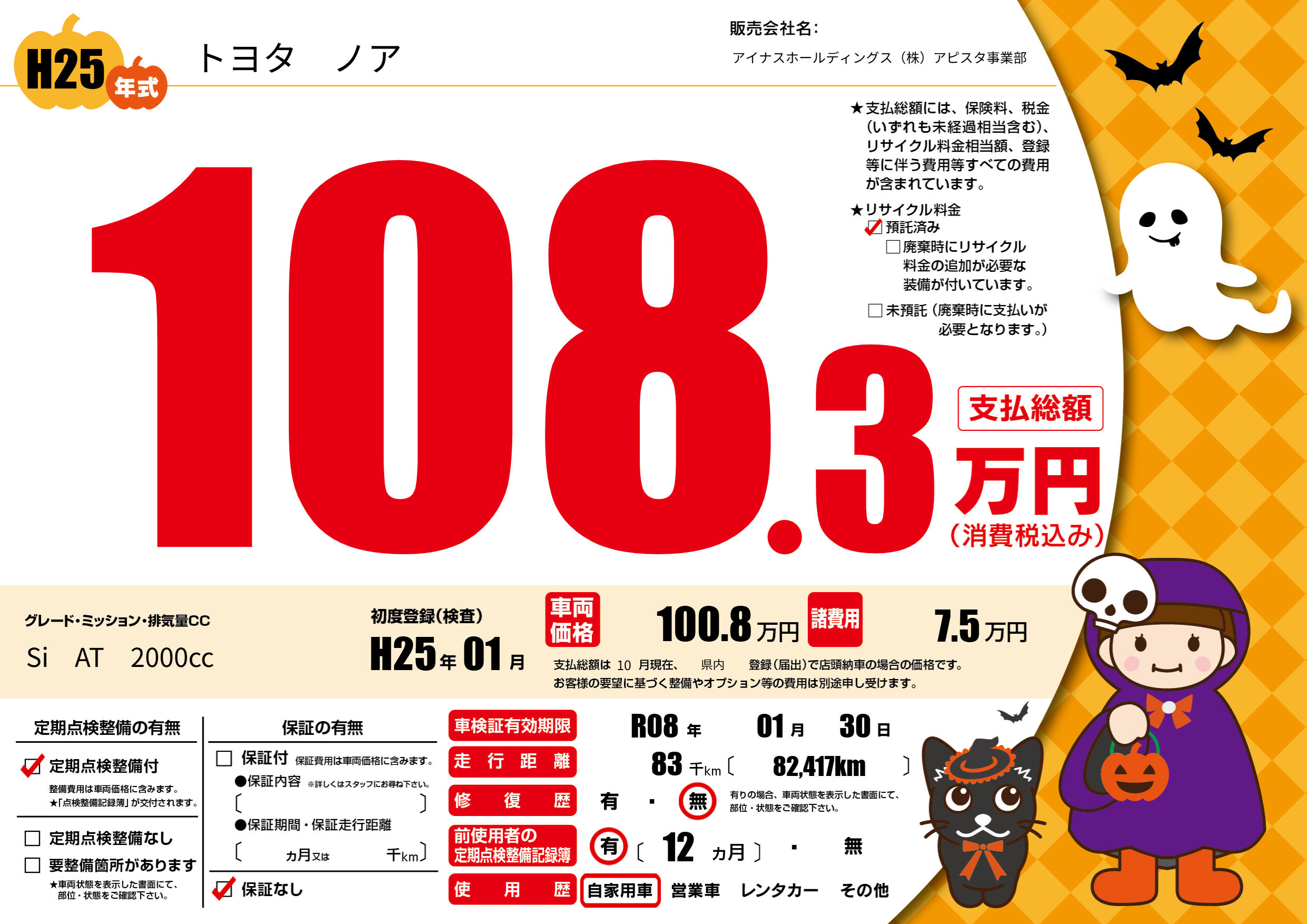 なし | 車検制限 | R08年01月30月 |