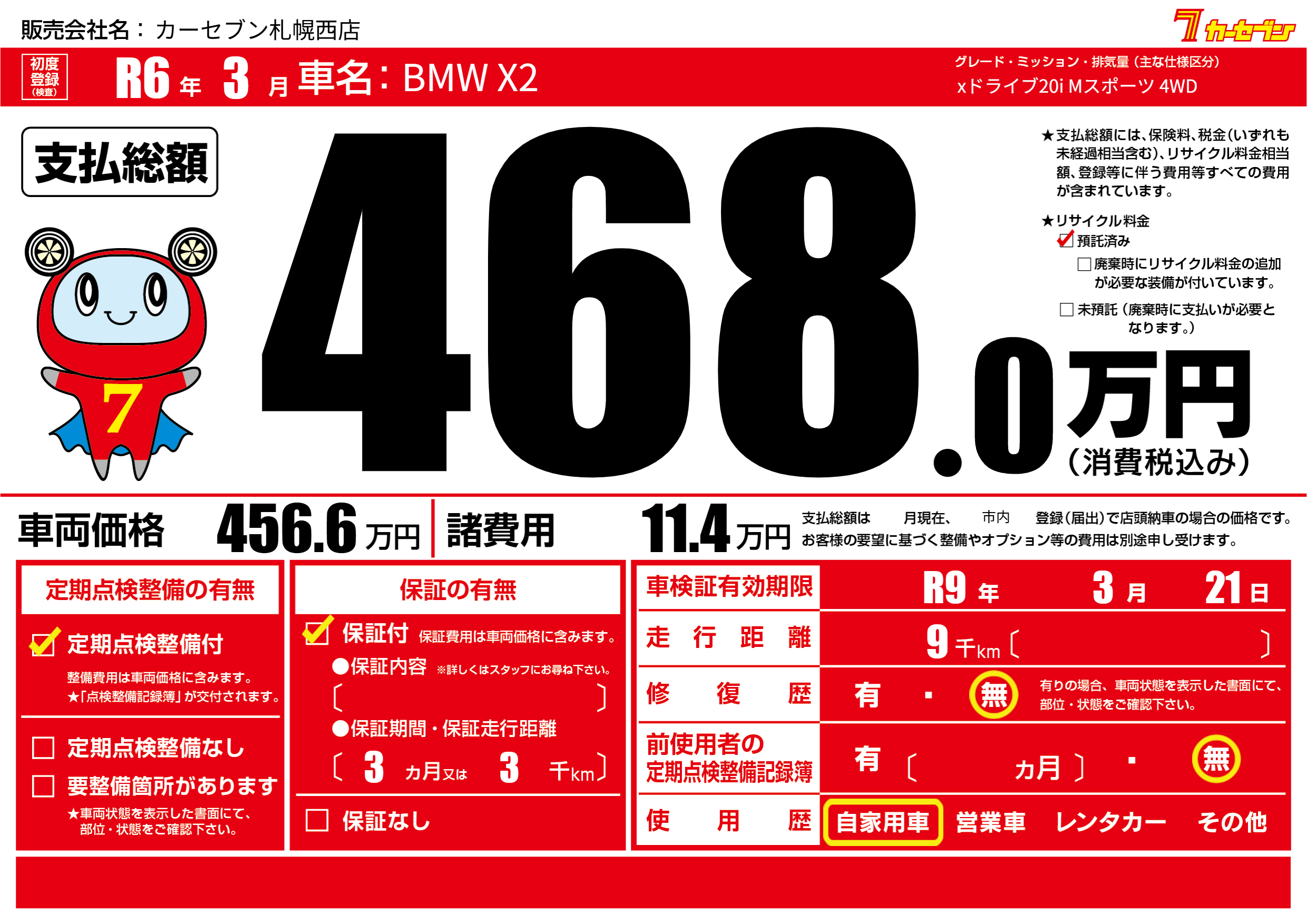 | 車名 | BMW X2 | グレード ミッション 排気量 |