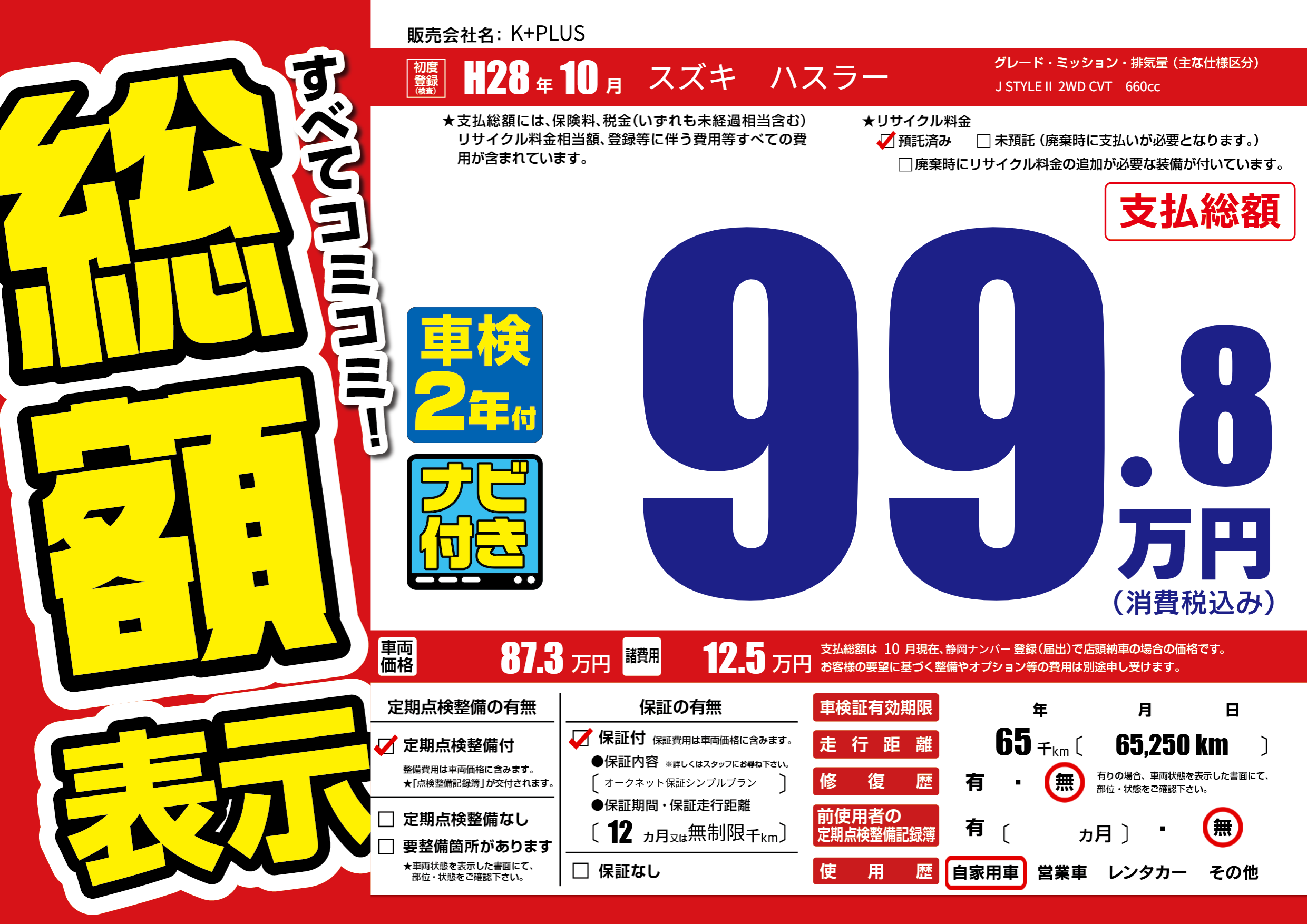 | 定期点検整備 | 定期点検整備あり | ||