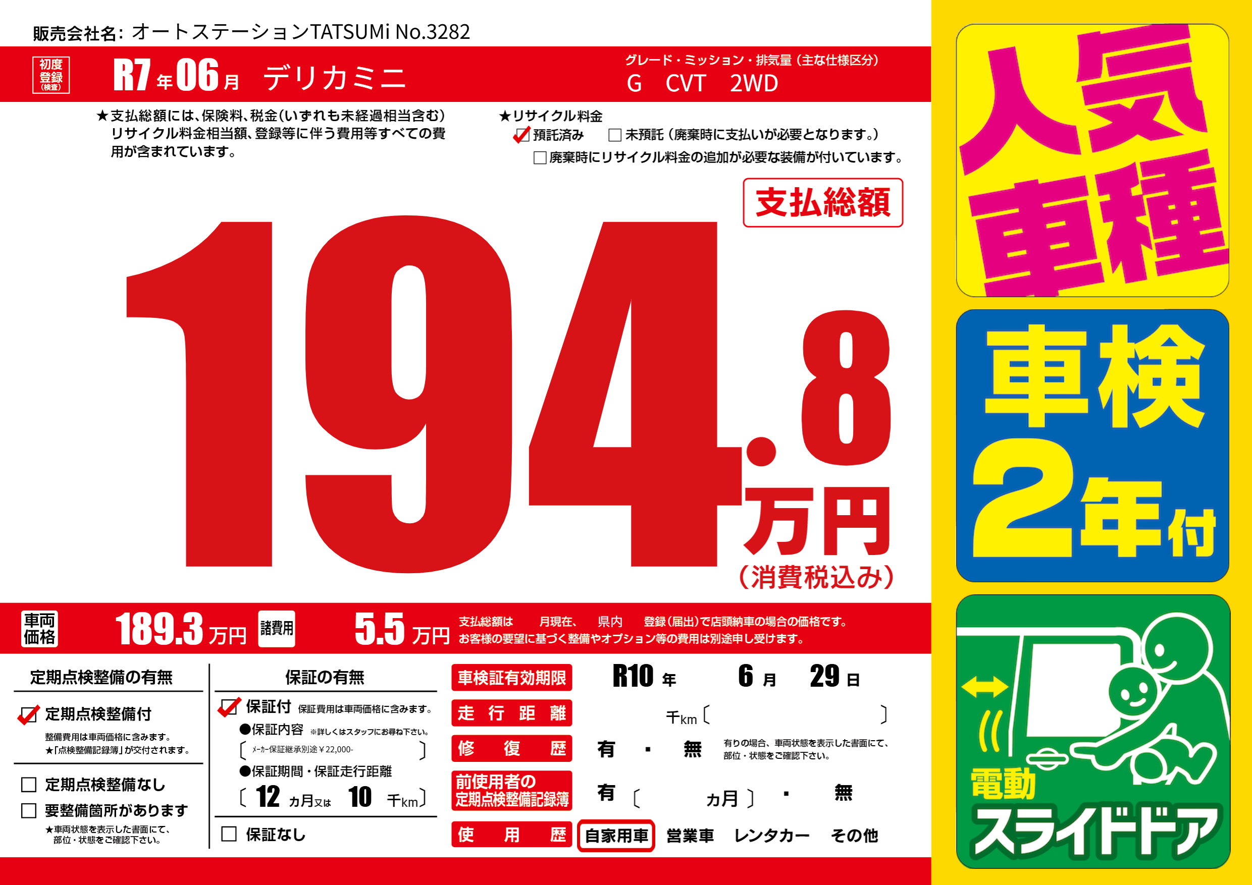 | 車名 | デリカミニ | グレード ミッション 排気量 |