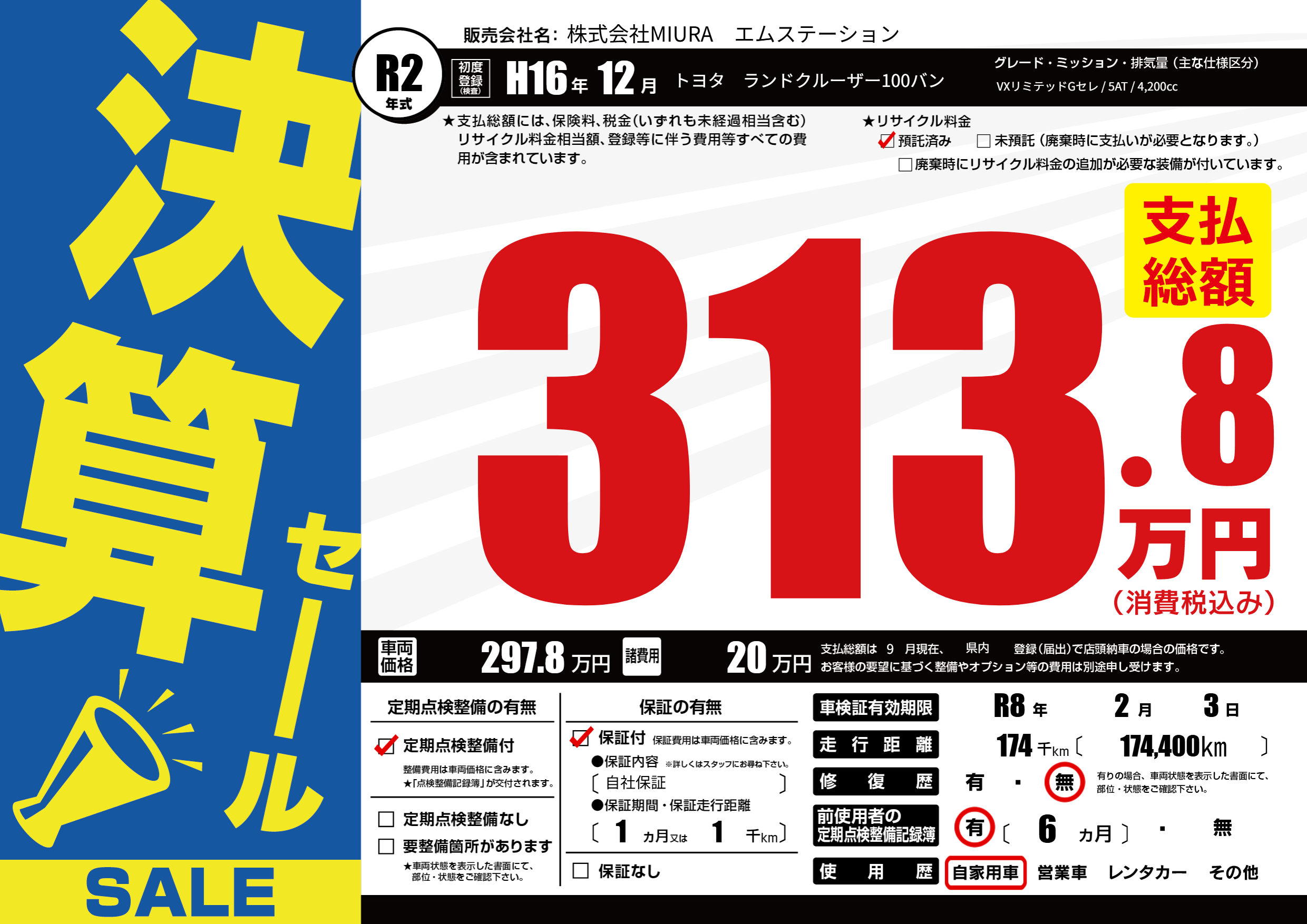 なし | 車検制限 | R8年2月3月 |