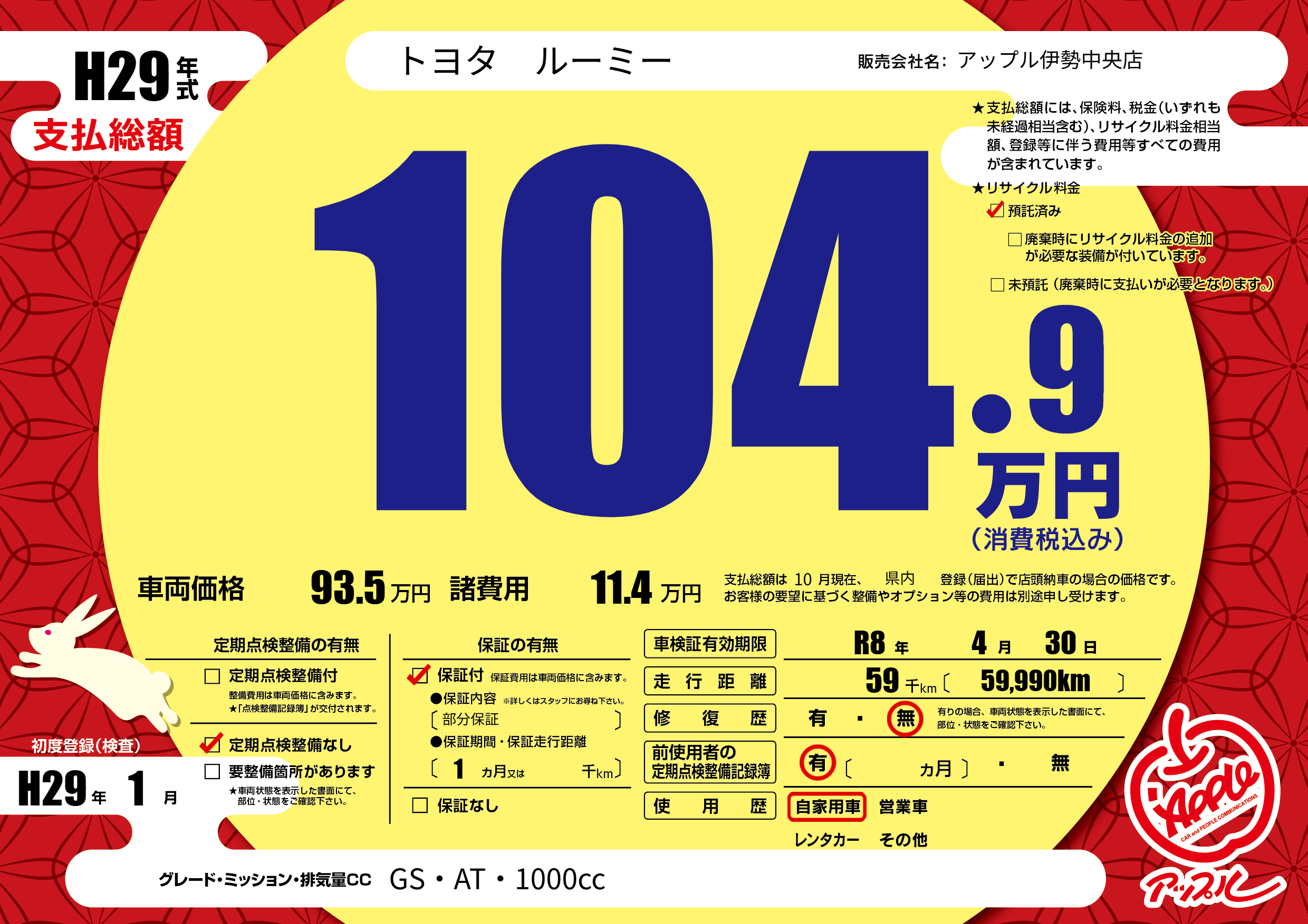 なし | 車検制限 | R8年4月30月 |