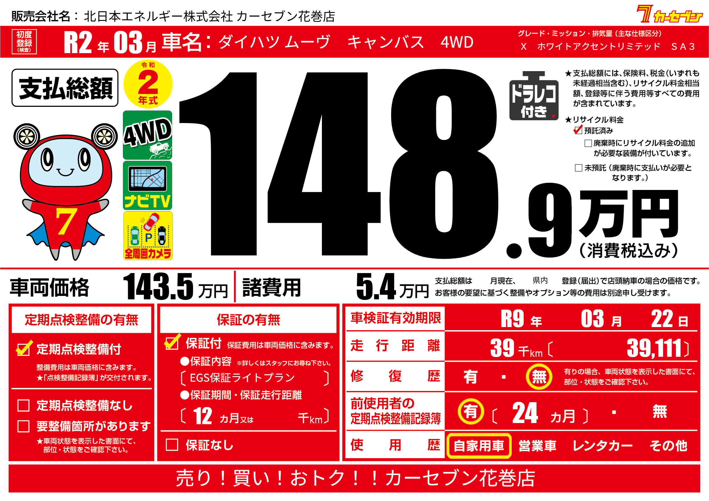 なし | 車検制限 | R9年03月22月 |