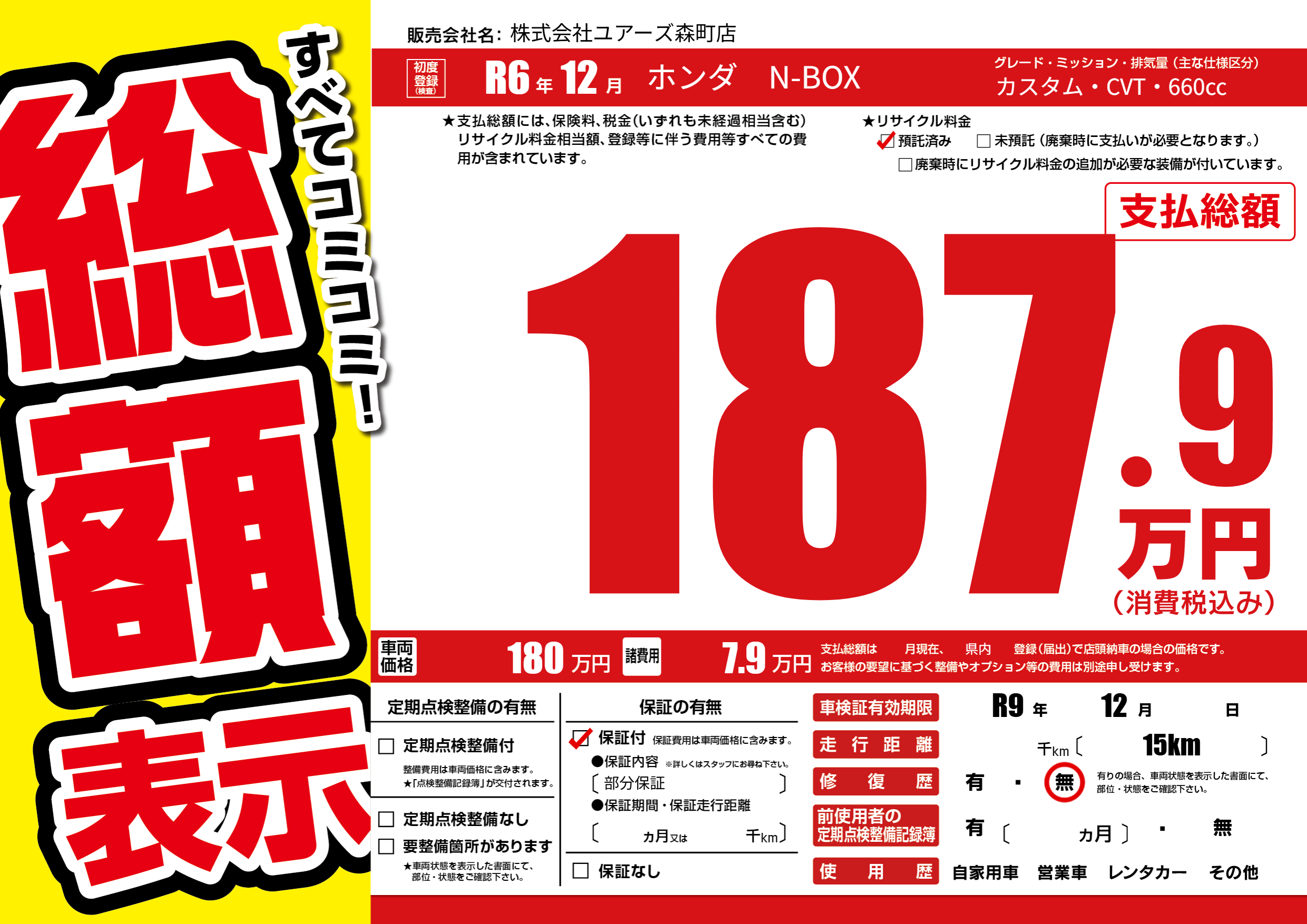 | 走行キロ | - | 初年度登録 | R6年12月 |