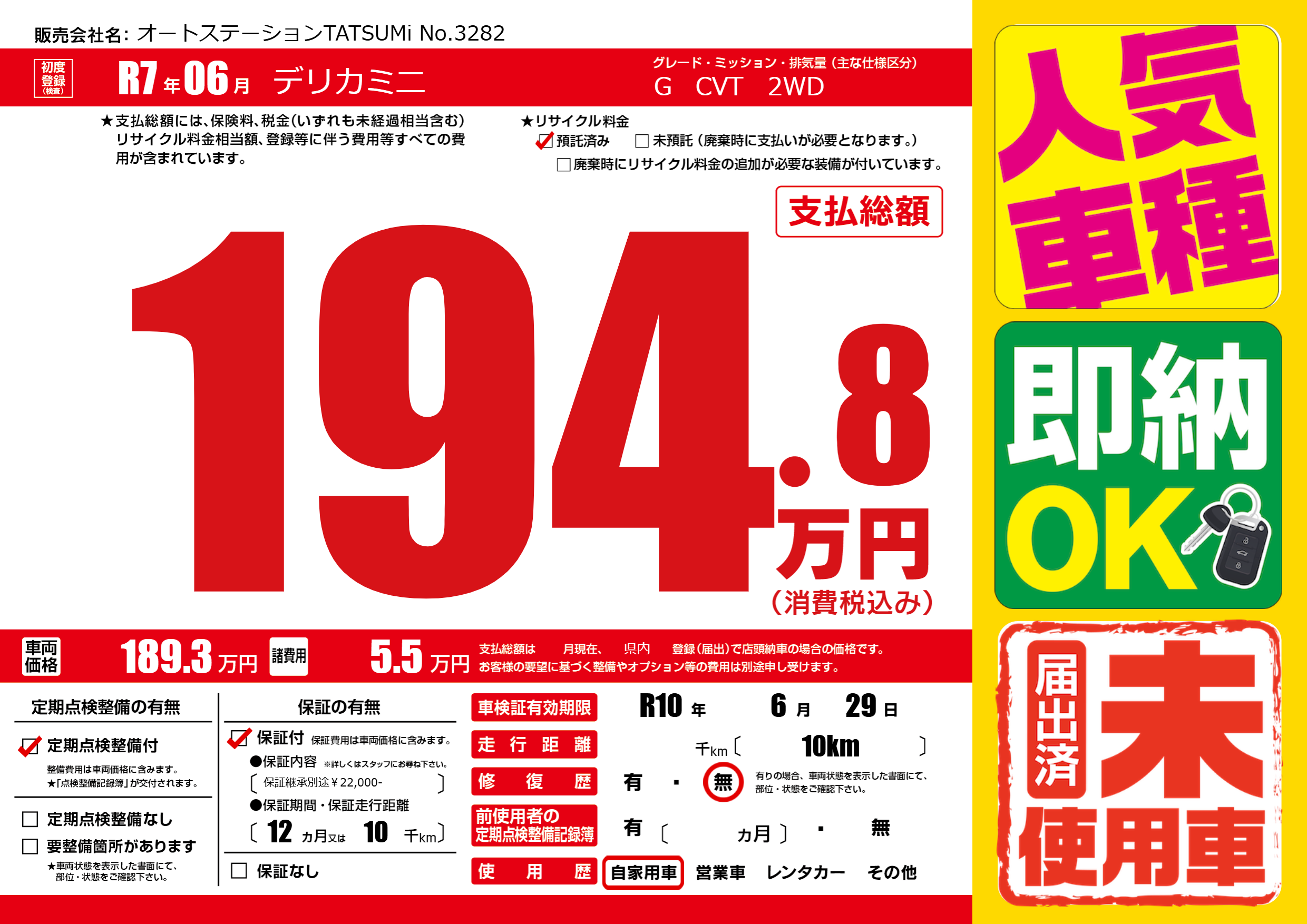| 走行キロ | - | 初年度登録 | R7年06月 |