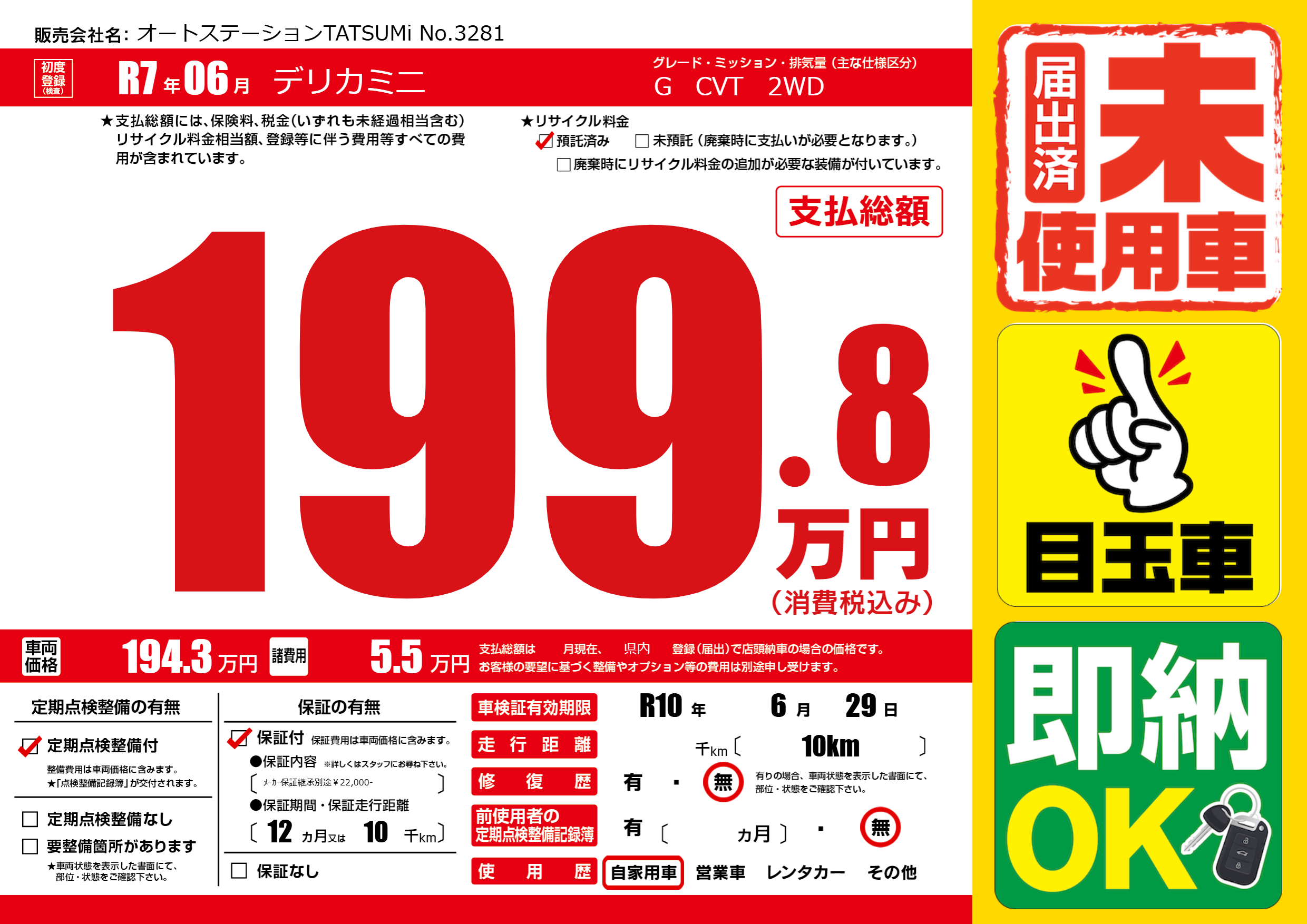 | 車名 | デリカミニ | グレード ミッション 排気量 |