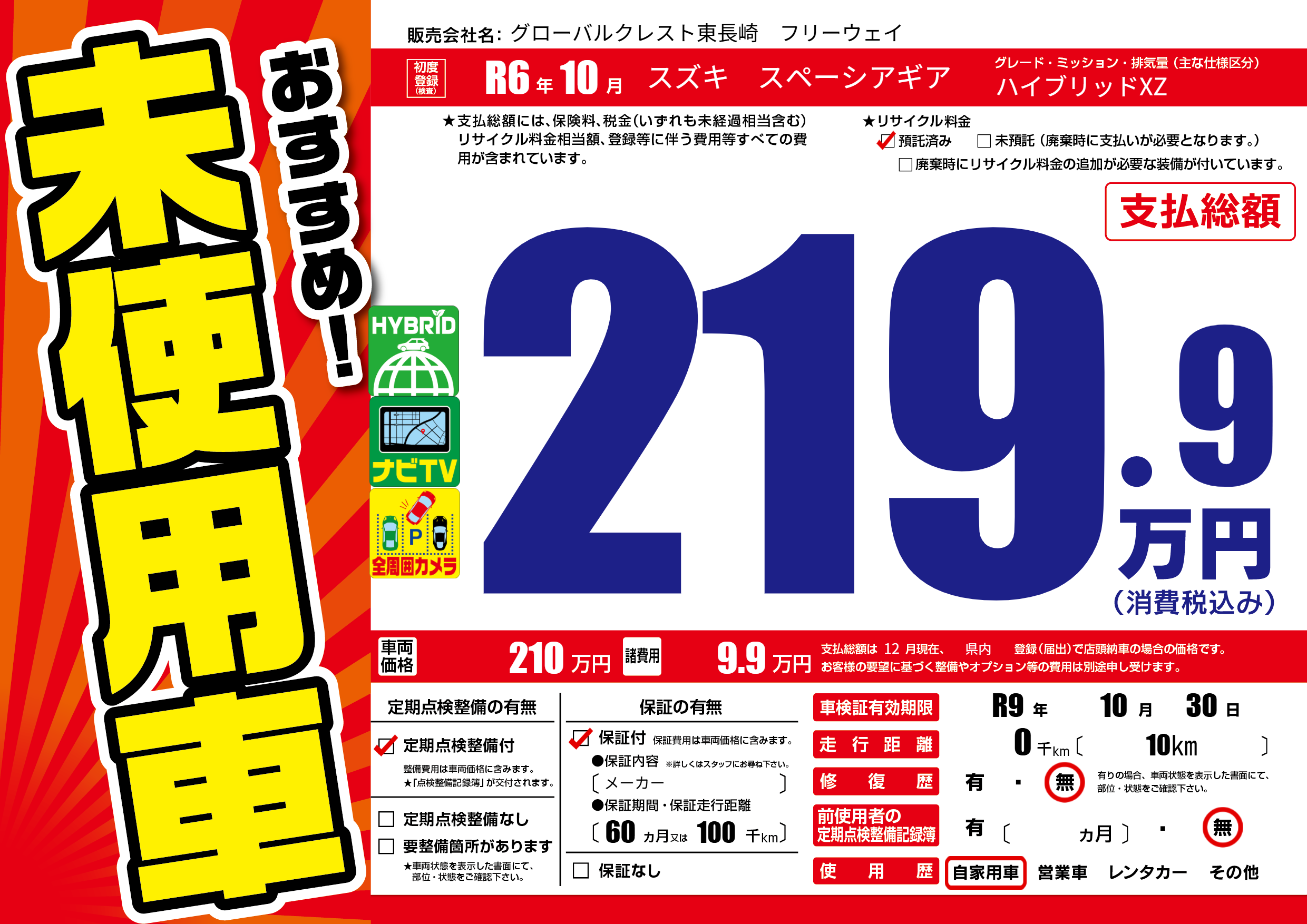 | 走行キロ | - | 初年度登録 | R6年10月 |