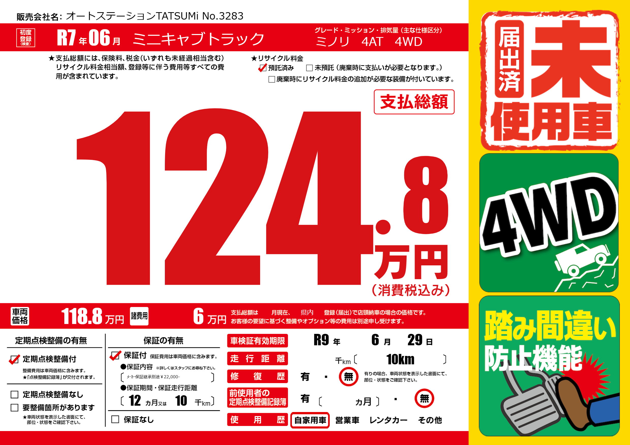 | 走行キロ | - | 初年度登録 | R7年06月 |