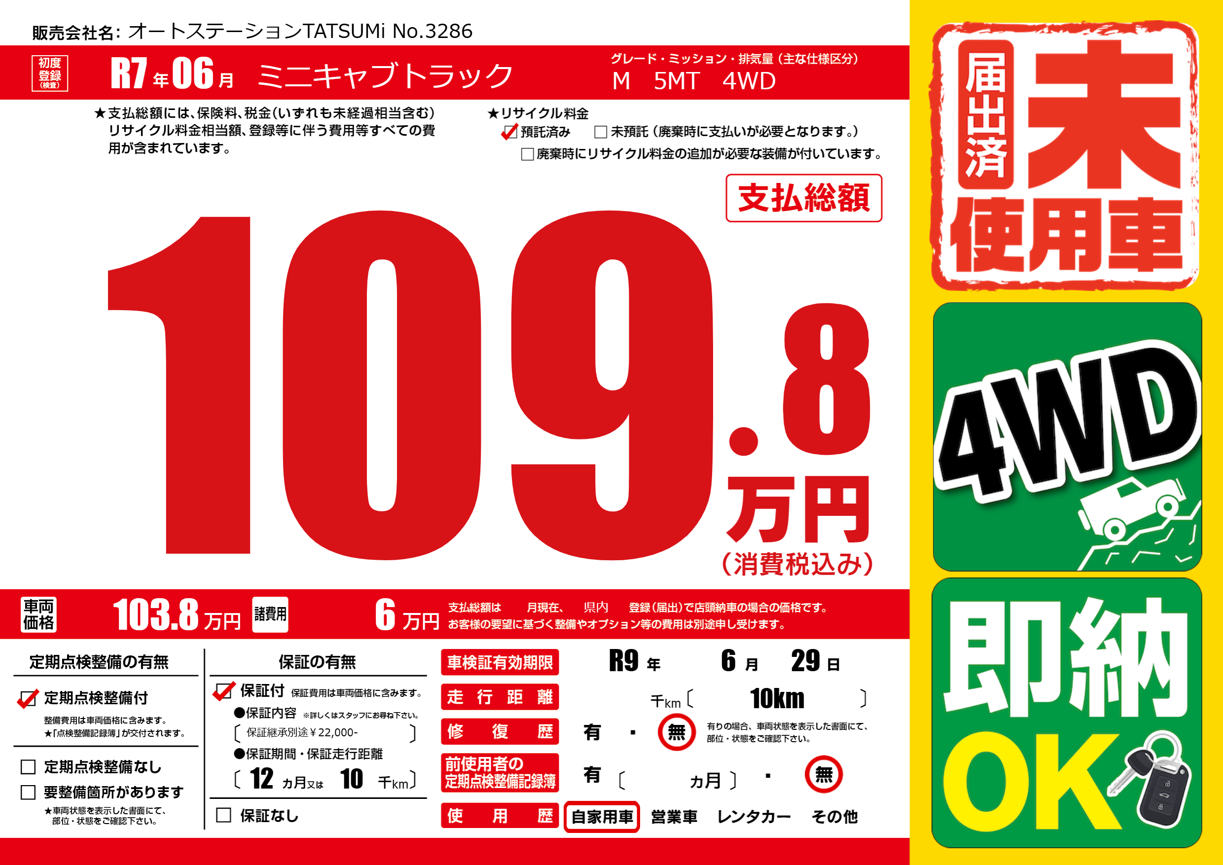 | 走行キロ | - | 初年度登録 | R7年06月 |