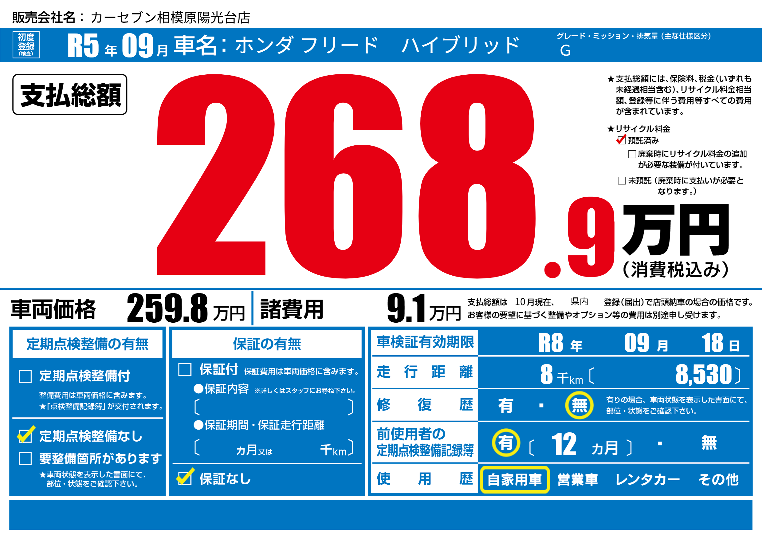 なし | 車検制限 | R8年09月18月 |